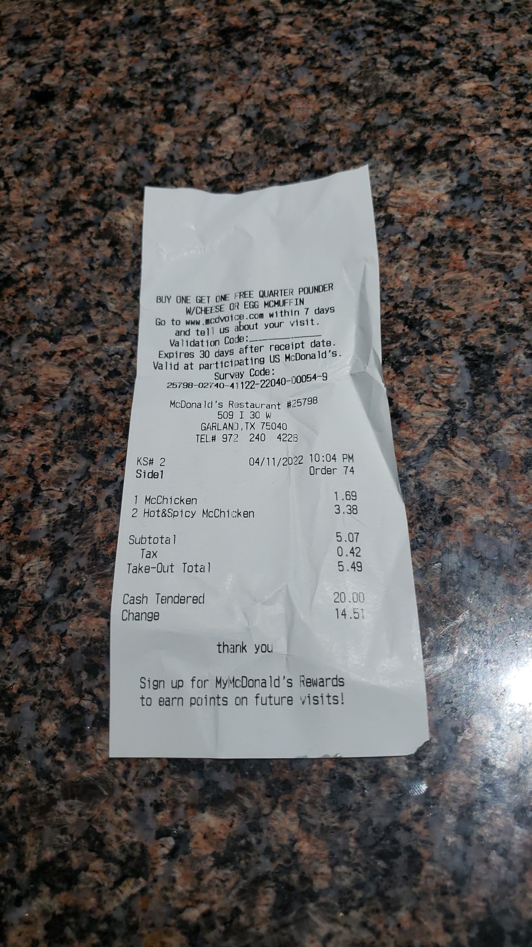 After 15 minutes had passed, I told my husband that it was taking quite a while. He went up to the counter to ask about our food and it turned out that the number they had been calling for 10 minutes was ours. The problem? The girl was calling for order â143â when our receipt clearly said â742â. She just shoved the food into my husbands hands and said âhereâs your foodâ and walked away.