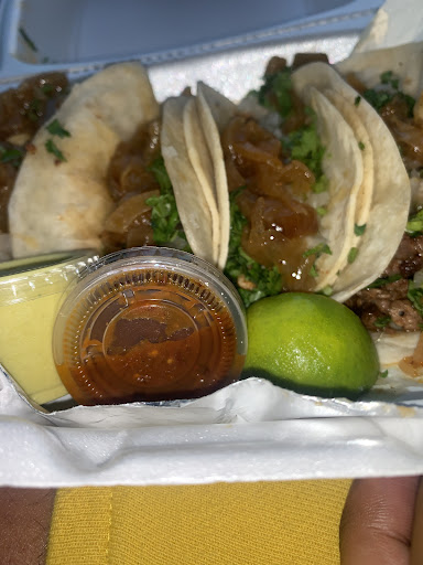 Ā Ā Ā Read moreMy boyfriend and I drove past this place going to dollar tree and noticed the truck! This is our neighborhood so we wanted give it a tryā¦. Service was excellent! You can tell they truly love what theyāre doing. Off that alone I would give 5 stars but the chef wanted me to leave an āhonest reviewā which I love they are open to constructive feedback. We had 2 steak and 2 chicken tacos on flour and corn. I would give the tacos a strong 7. I donāt think all the grill onions are needed but they definitely add great flavor. The steak and chicken both had good flavor but in my opinion could use just a little more flavor that sticks. It could also be a little less greasy being that the tortillas are so soft HOWEVER I didnāt mind any of these and I will DEFINITELY be back because they were very good and solid tacos. My 7 could really be some elseās 10 because I canāt deny the...
