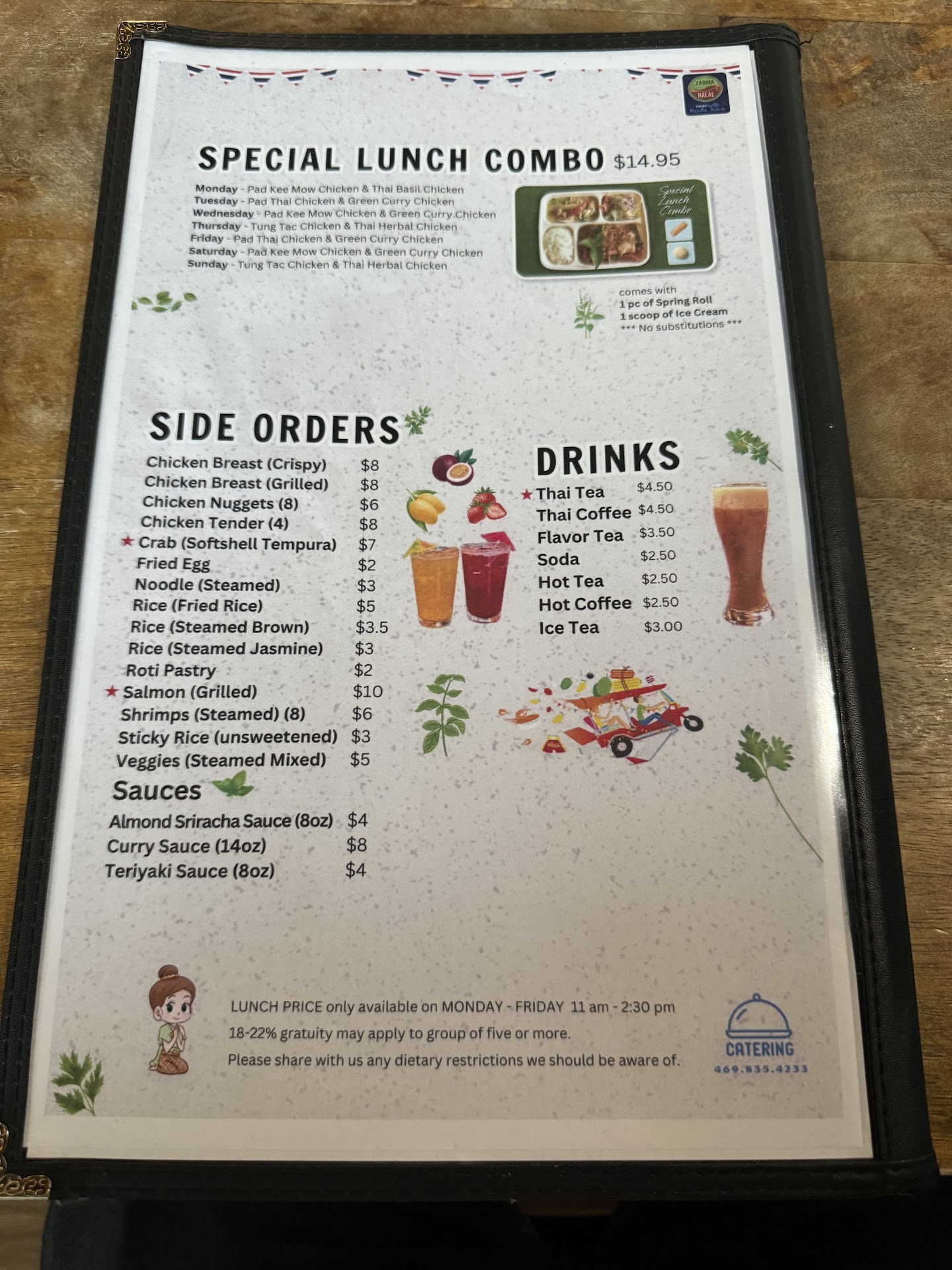 The food is consistently fresh, delicious, and beautifully presented. Each dish bursts with flavor, and I love that they let you customize your spice level to suit your preference. Their menu is an incredible mix of Thai cuisine with touches of other Asian influences like Vietnamese, Japanese, and Chinese. It’s so convenient to enjoy this variety in one place without ever compromising on quality.