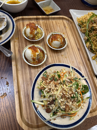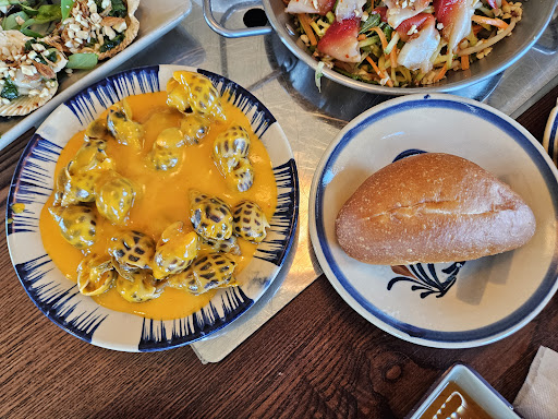 The real bad part for this review is the service. It started off well but then became absolutely terrible. My party arrived around 7:20pm. Seated immediately, given water and other accompanients, menus, and spoke a bit with the waiter for their recommendations. We ordered from another waitress that we flagged down for attention who wrote down our dishes. Ordered 4 drinks (2 viet coffees and 2 teas) and 7 dishes (one of the whelk dishes, snail in coconut milk, duck egg with squash, and a couple others). After ordering, about 10 minutes later we got our drinks, which were good. The viet coffees were a touch on the sweet side and weirdly served in to-go hot coffee cups. The peach tea and rambutan milk tea were also good. The rambutan milk tea was a good milk tea but fell flat for us as it didn’t taste anything like rambutan. After about another 15-20 minutes we received the snails in coconut milk. The snails had great flavor. The coconut milk was maybe a little sweet for our taste. After another maybe 20 minutes we then received another seafood dish (cannot recall the shellfish) that was spicy and flavorful.