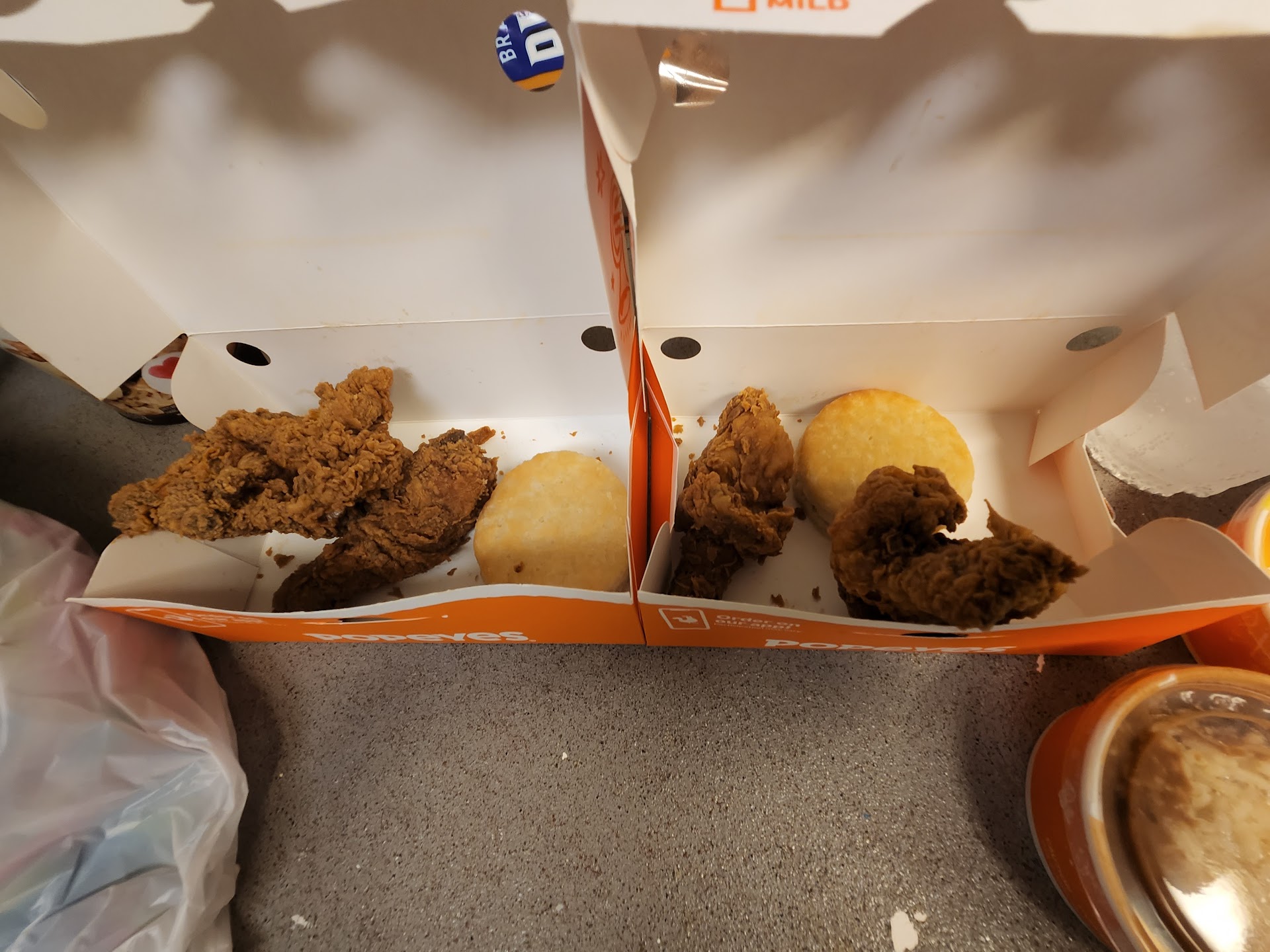 After the old store was torn down, and the new one was up and running, I really had high hopes that the owner would make sure that things went better at this location. Boy, was I wrong!!! Every visit takes at least 30 minutes because they do not have chicken ready, and the staff is past the point of incompetent, and disagreeable. This evening's experience took the cake though. First off, the girl behind the counter must have been brand new because she didnt know how to work the computer, nor did she even care enough to put my order in correctly. The order itself was fairly simple, as follows: 5pc tenders dinner, spicy, with french fries. Number two dinner, two legs spicy with mashed potatoes. Large red beans and rice. The girls entered the order as a 5pc tenders, mild, with mashed potatoes. At this point that manager comes over and steps in, corrects the order, and tells me its going to be 20 minutes for my tenders. "Ok, at least it will be fresh" is my initial thought, and at least the manager caught the error and corrected it. After waiting the specified time, my order is ready. Being i have worked in the food industry for many many moons, I know to check my order before leaving. I open the first box (#2 with two legs spicy) to find one regularly size leg, and one drumette. I asked if I could get a regular size leg,and the manager got all snippy with me, saying they're all that size. When i point out the fact that one leg was normal size, she gives me a nasty look, and chunks a other tiny drummette size leg i to the box. She hands me my box back and i proceeded to check the second box. All was well with the secind box (5pc tenders). Hen i noticed that the manager had not given me my large red beans and rice. I asked for it and she was snippy again, like me asking to receive what I paid for was a huge inconvenience for her. When I got home amd we started eating was when we noticed that none of the chicken or tenders were spicy like I ordered. The biscuits were so dry that they crumbled when touched, and the fries were cold and nasty. Do yourself a favor and forget this place and go to Churches, save yourself the grief, dont waste your money, and get some good food!!!! Side note: the store was pretty filthy, with crumbs on the floor, the tables, and my daughter said the ladies room...