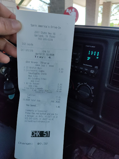 Read moreThis place is terrible. I moved to the area and have been to this location 4 times now. The first time I waited at least 20 + minutes. 2nd time was even longer. The 3rd time I tried the drive thru thinking this will be faster lol. No if it weren't for the people pulling out of line because they were tired of waiting I would have been there all night, mind you not one of these times were during what I would consider a busy time. 2pm on a Tuesday and I'm waiting 20 + minutes on a hotdog lol. Now, I live so close and I love sonic so after a few weeks of saying f that place, I tell myself ok, let's give this place one more chance...burned again haha. I pull up at 10pm and there's 6 cars there with people having food delivered to them. I wait in the line 5 minutes to pull up and have them tell me there system is down and I can't order any food. Damnnnnn... there goes my boneless chicken wings. Ohh how i craved for the taste of those sweet sweet asian flavored wings. I swear this place has messed with my emotions more than my ex wife. Hurt my heart more than when my precious dog "tootsie" passed away in my arms at age 11. Crushed my spirit more than the time I tried out for Disney channel and was told I'm just not what there looking for. Ohh sonic, why have you...