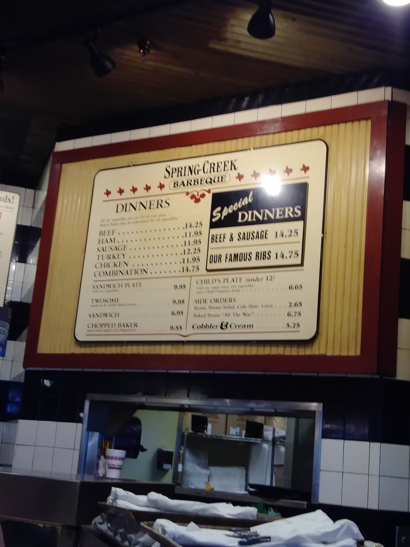 Terrible customers service without their Manager.Call for togo order with combination of sausage and brisket (ask for marble cut)and extra 3 breads.When i came to pick up they showed me the order and i asked them if they can add extra $5 more for brisket (marble cut) on the top of what i just ordered and i did asked if they can give me some butter and pickle.5 minutes later she brought the ordered out for me and i paid $23 dollars.They charged me 0.35cent for each extra bread ,$5 extra for brisket (i asked for so iam happy to paid) .When i get in to my car ,i fell like i better check my order before i leave, SHOCKED me when i open my orded there are only 6 small peaces (include $5 extra )of DRY MEAT(there not event a brisket with marble cut)and only 1 small slice pickle with 3 small round of onion. I came back and told them will you check for me,this is not event a brisket ( not talked about the marble cut),they was mad at me for what i said.I told the guy(who cut the meat),and he said i already throw away so i can't check and this was brisket with Marble cut.He was mad at me and he walked away and somebody els have to take over his work.I know they are about to close when i came back,i saw they started clean up and put everything away ,they have to get me a new brisket they cut out from the big peace (this one maybe save to use for tomorrow i guess).You can told me ,we about to close and can't take your ordered,i rather you to tell me that then you gave me whatever left over ,COME ON GUYS,i am happy to say iam come here alot,iam a regular customer here, I don't know how to make "spring creek bbq" but i know how to eat" spring creek bbq". If i didnot promised my son to buy him food here tonight ,i would get my money...