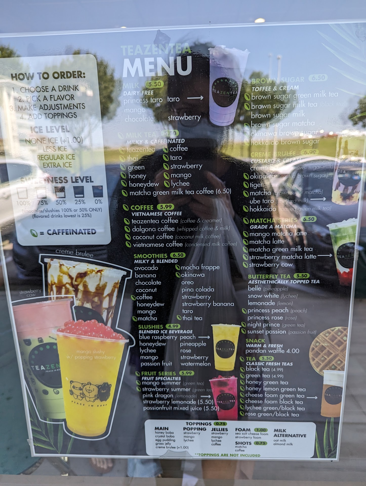 7/30/23 This is another new boba addition to the area, and I'm so glad it's near me! I came to their BOGO free grand opening and was super impressed with my two drinks. Normally, new boba places all taste and have the same menu, but TEAZENTEA has a lot of unique drinks that I haven't seen before. They even offer free samples of their pandan & ube waffles, which are delicious as well!