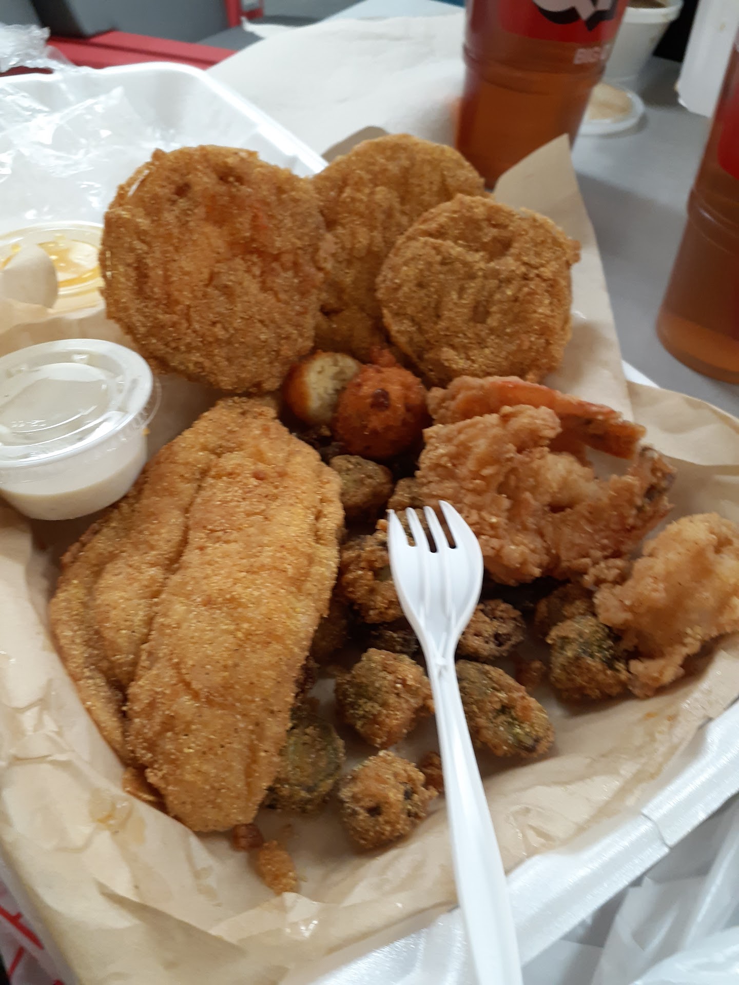 Read moreI’ll start by saying we were joyfully greeted when we entered the establishment which is a plus for me… but as me and my partner were discussing what we were going to have I mentioned I wanted red beans and rice, so the lady at the counter pointed out that there was a certain entree that included red beans and rice as a side so I chose that entree, when our food came there was green beans on my plate instead and we told the waitress that it wasn’t what we had ordered, she agreed to see what she could do about it and came back with no solution other than us buying an additional side that we were told came with my food, not to mention the green beans were sad and nasty otherwise I would have just eaten them cause I actually do like green beans. My man ended up going to the counter to order me the red beans and rice anyway because he knew that’s what I really wanted and the lady that took the order sat in his face and lied saying she heard us say green beans when we both clearly heard her say it would include red beans, he paid for it anyway. Aaaaand they sold us kool aid slushes passing them off as Margaritas, I cannot make that up, overall the food was really good, fried fish was bomb and the jumbo shrimp were huge, I’d just say clarify exactly what you’re getting...