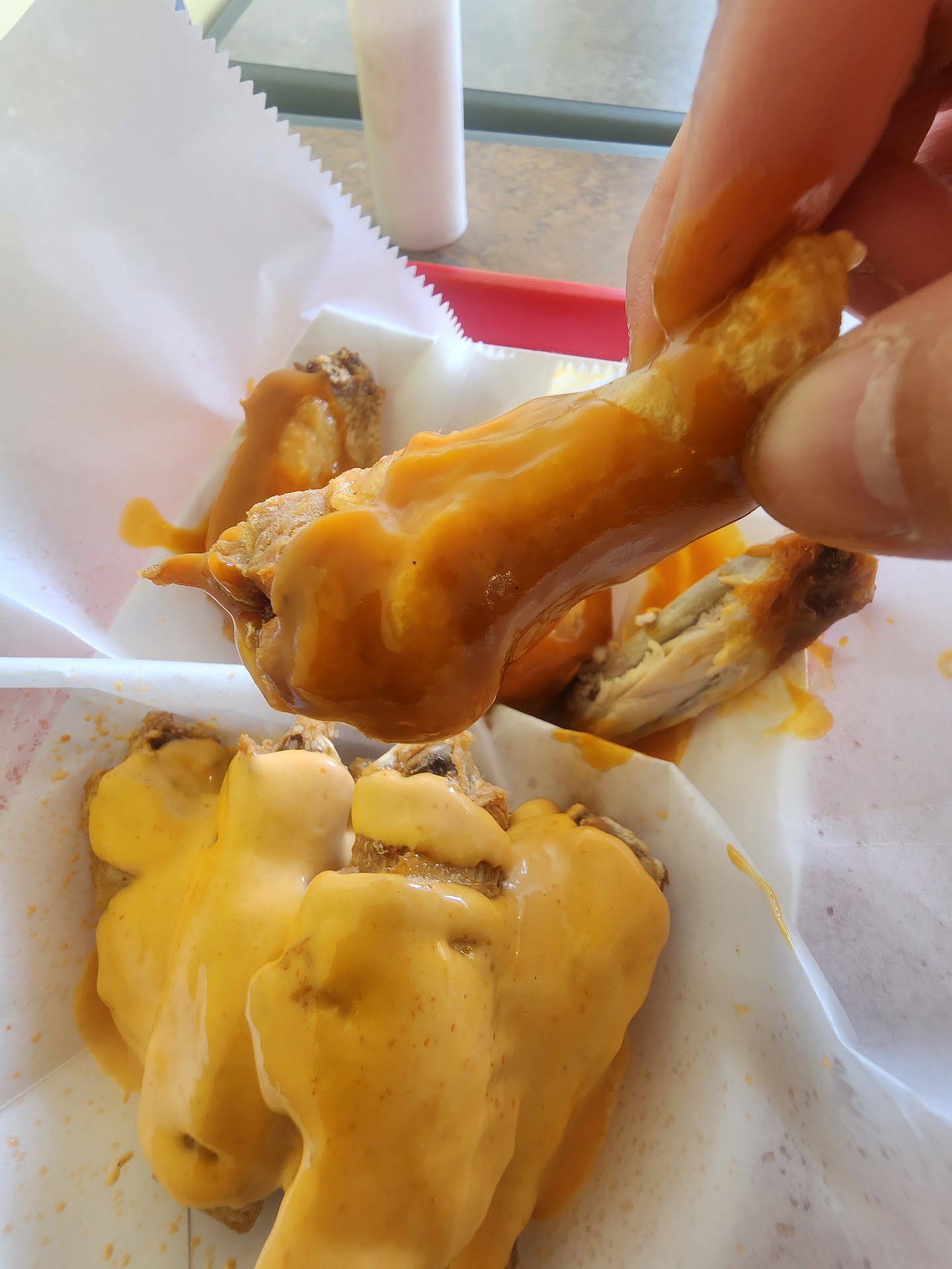 Very good price and service for excellent wings. They have many options to choose from and their wings come out piping hot! Super fresh. The Cajun ranch sauce is killer! We also had garlic parmesan wings which were excellent too. We ordered combination fried rice to go which looks fabulous. Couldn't eat all of the crinkle cut fries which were seasoned perfectly. We ordered a ton of food! It cost us about $35 and we have 2 more meals that we'll get from it. I've got to come back for the spicy items. My wife doesn't care for very spicy foods. All in all, this is my new favorite wing spot in the area. Forget Wing Stop, try this...
