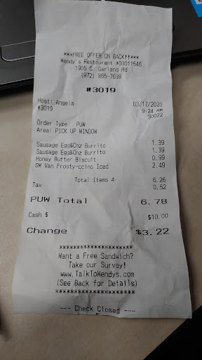 My family has had a business in the Garland area for over 30 years. We've ordered almost every Sunday from the Wendy's off Garland Ave and for the last 3 years,the service has been terrible. The hispanic manager is always messing up orders and when her staff tries to correct orders they mess up, she becomes VERY rude and combative. This afternoon we ordered a nugget meal, a biggie bag meal, two salads and 2 drinks. Our only request was no cheese or ketchup on the burger...simple enough.That upset her. THEN I asked for light ice on the drinks then she told me I'm ordering too much and just drive around because she doesn't have TIME to verify our order. THEN she threw the food at me and also became upset when I asked for a drink carrier for all 4 drinks. Then she will ask you to fill out a survey to get free food, as if she's trying to forge good surveys with horrible sevice! Her employers ofte look horrified as they are trying their best to help people while also trying to appease their boss.We'll never go to this location again and it's quite sad to see this location go to the dumps over mismanagement. Please do better and treat paying customers with respect, regardless of race or...