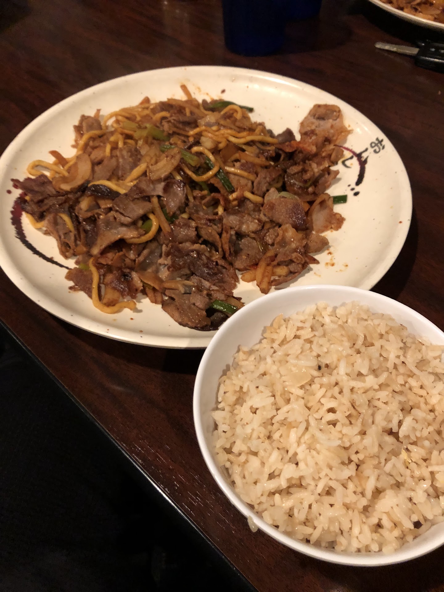 They got that frozen thin sliced beef, chicken, turkey, and pork with the favs like potatoes, peppers, onions, and bean sprout etc. like dawgggg pls😫 I’m tryna lose that weight. They be grilling on a giant flat top just like they did in Mongolia -2k19 BCE🤨 the sauce is tangy, salty, sweat and sour plus spicy (if you bout it, can make it 10 like me, cuz I like to suffer while having fun)😏😏😏