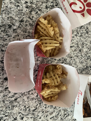 First off, I noticed that there didn't seem to be any REAL management. All of the girls behind the counter seemed to be in high school. As soon as my boyfriend and I walked up to the counter to order our food the girl didn't say a word. Actually, the entire time we were at the cash register, she didn't say one single word. My boyfriend and I ordered our food and she didn't ask what we would like to drink with our meals..etc. She was extremely rude and unfriendly. I shrugged it off and we just sat down to eat. Not only did we have to sit there (across the dining room) to listen to their loud talking, but there were at least 3 flies swarming our table. I noticed why there were flies everywhere.. The dining area (closest to the playground area, where we sat) was covered in crumbs. Every single table had crumbs all over it, so did every single seat, and the floors were covered as well. We had to brush off our table and seats just to eat since there were NO clean tables/seats. 1 of the 6 or so girls behind the counter could have absolutely cleaned the dining area. Not only that, but there was only one other couple in Chik-fil-a, so there is no excuse for it not to be clean, since it was so slow. I work in the food industry and I keep the dining room area PERFECTLY tidy the entire shift I am at work. Otherwise, I will get written up or terminated for not doing my job. It's sad to me that you pay these people to work, and yet they're behind the counter carrying on and gossiping and getting payed to do absolutely nothing. I quietly told the very unfriendly girl behind the counter that the dining area was very dirty and she didn't seem to care at all. I love Chik-fil-a, but this is the only bad one I have ever visited. I won't ever come to this Chik-fil-a again because of how unsanitary it was and especially because of...