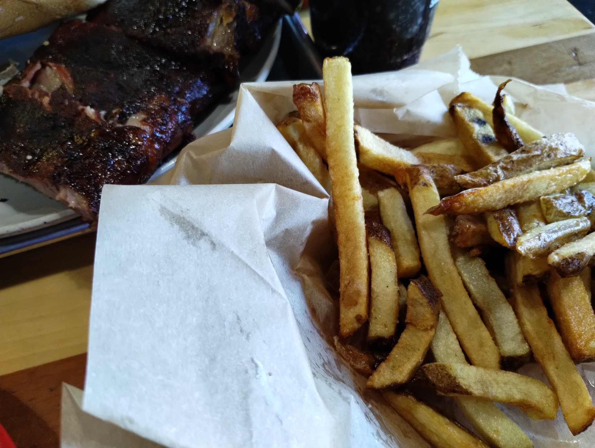 Read moreA bit disappointed in the location, I had high hopes for the look of this place. The food looked and seemed of good quality, but sadly as with any food that is meant to be served hot, ending up, room temperature at the table. We ordered pork BBQ, chicken, brisket and ribs for meat. The sides included collards, Mac and cheese and fries. Yes room temperature fries are not good. The collards were as unbelievable as it is, over seasoned to the point my wife couldn't eat them (Born and raised in the Carolinas, so yes we know what collards should taste like). The best side we tried was the Mac and cheese. As far as the meat went, the ribs were number one, followed by the brisket and chicken. Again a disappointment with something that should be, a given at a BBQ place, the BBQ. The BBQ was bland, I hate to say. The only thing saving the BBQ was the sauces that you could choose from. The basic sauce was a standard BBQ sauce for all around dipping. There was also a vinegar base sauce, the normal vinegar and pepper mixture. Still the BBQ needed help, because it was dry. Then we came to the bread, either cornbread or toast were the choices, and we had both. Strangely enough the toast won over the cornbread. Not because the toast was fantastic, but the cornbread was a bit off. The concept of a fast food BBQ location that can produce food like the folks that just down right love and have to be the best at it, is great. This location isn't it, unfortunately. Maybe they could be, but it will have to change, and for starters, hot food and talk to...