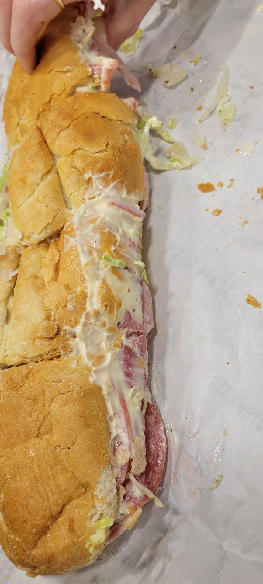 Read morePlace was absolutely disgusting the glass where they make your sandwich was splattered with stuff. Seems like it hasn’t been cleaned since grand opening. The case where they store the whole meats and cheeses was also very dirty there was a random slice of cheese thrown in there just on top of the whole packaged meats and a piece of ham.The prep station looked like it needed to be wiped down really bad there was tons of food spilled out. One of the girls came from back to replace the lettuce and she could have wiped around it before dropping in the new one. Just seems like everyone is doing the bare minimum here and no management to look after them. Trash was spilling out behind the counter i think the cashier could’ve have made her self useful for that instead of just standing there waiting for sandwiches to be made. Honestly contemplated just stopping them while making my sandwich and walking out a few times I was pretty grossed out I couldn’t get pictures because there was a lady right behind me. Sandwich was decent nothing wrong with it but definitely didn’t enjoy it as much because I kept thinking about how nasty all the employees must be at their job with it looking like that. I do love jersey mikes but I’ll stick with 40/42 or Smithfield I’ve had great...