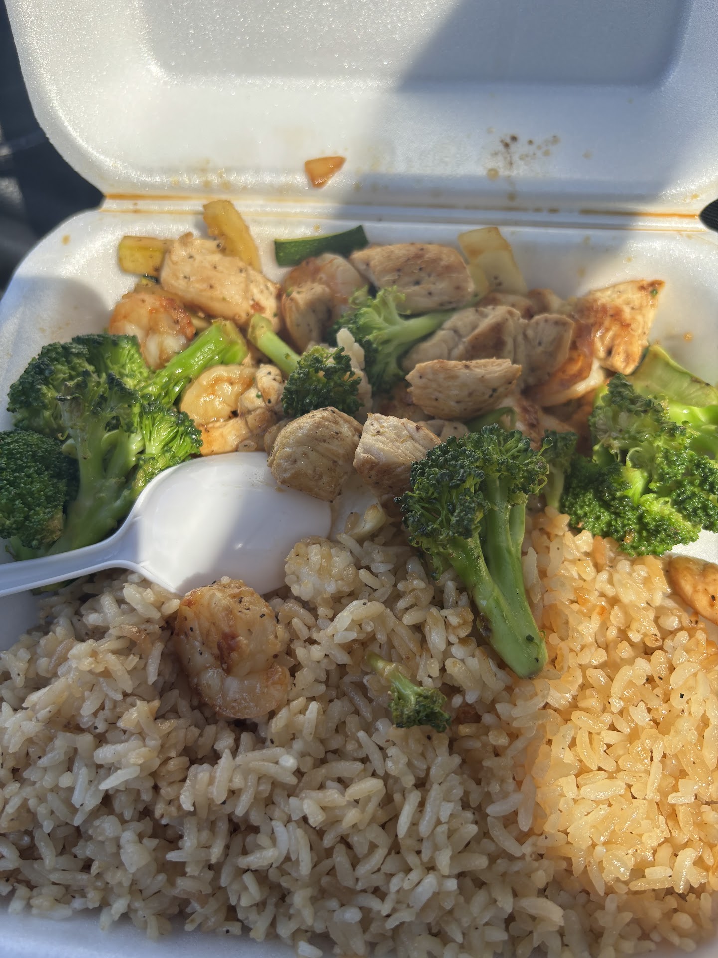 I ordered 2 hibachi chicken and shrimp. The shrimp was ok but the chicken was not good at all. I haven’t eaten there since covid but prior to that, the chicken was great! Today it didn’t look like chicken and it was not cooked all the way. The chicken was gooey and spongy like in texture. It use to be good when you could go inside and see them cooking. Now they got it where you can’t go in nor see thru the windows. No contact at all. Why is it still like that when just about all of the restaurants are open now? I called the manager and spoke to him about it. He didn’t have much to say other than he would check it out lol. He knew the meat wasn’t right and that’s why he didn’t try and make it right by his customer. . It was a waste of my money. I won’t...