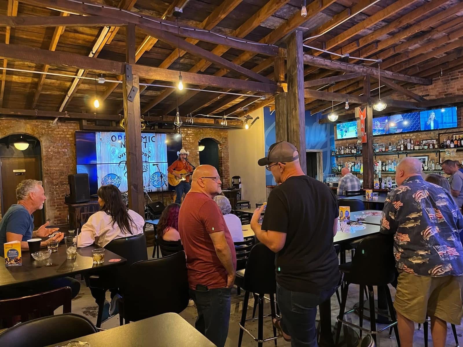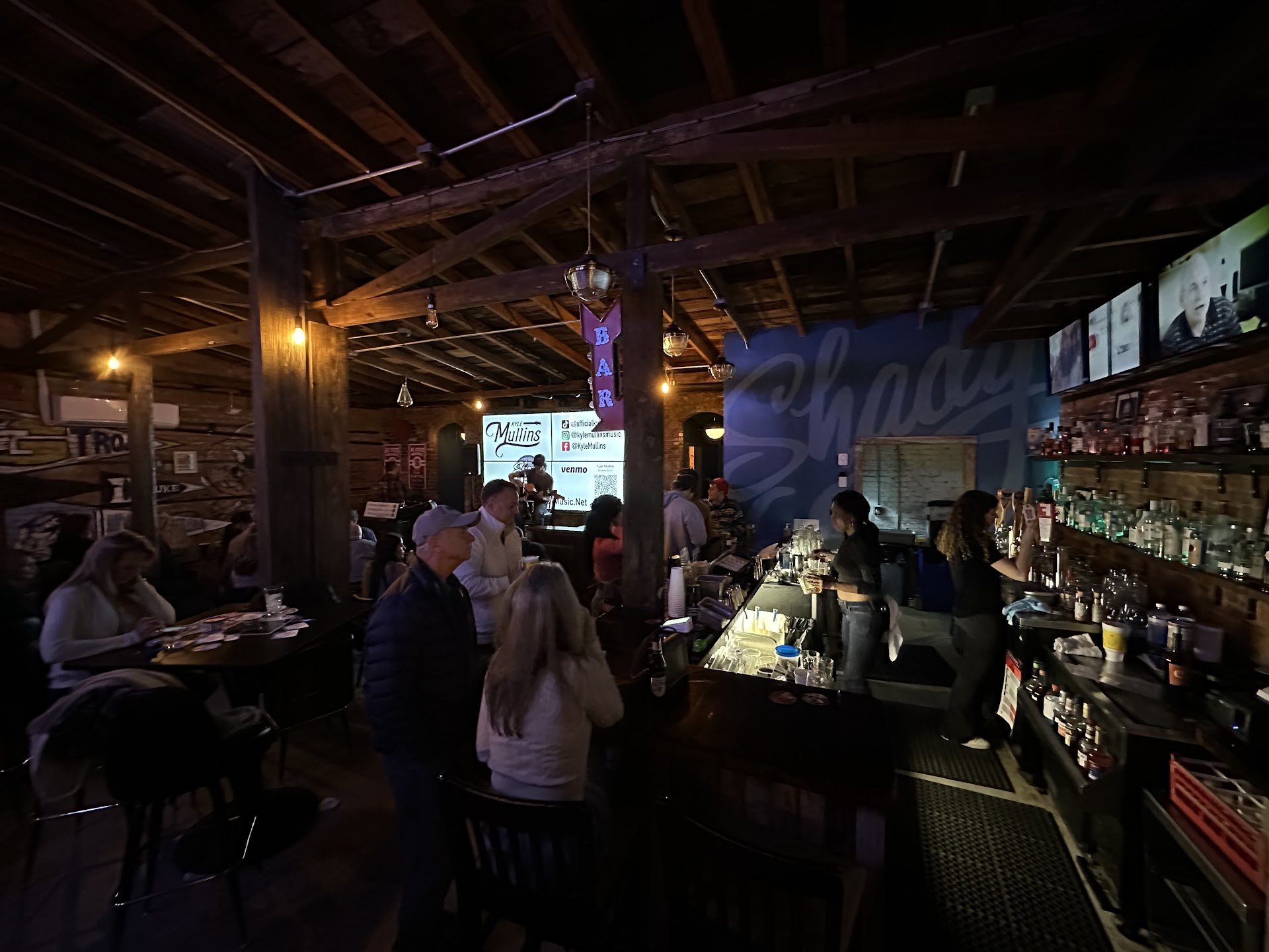 We went to Shady's for dinner so I'm reviewing it as a restaurant for perspective. Loved the old rustic wood beams and brick, great to see a historic building still being used. We chose Shady's based on their menu pic posted to Google maps (no menu on website), because my son wanted mac'n'cheese and BBQ is always a winner. However that menu was very outdated, no mac'n'cheese, much smaller menu with everything a la carte, no cohesive meals. That said their pork BBQ sandwich was good, but would have been much better with some actual sides instead of bagged chips (although I appreciate they do local NC Carolina Kettle chips). Beer and liquor selection looked great for a bar this size, the mixed drinks I saw go out looked well made.