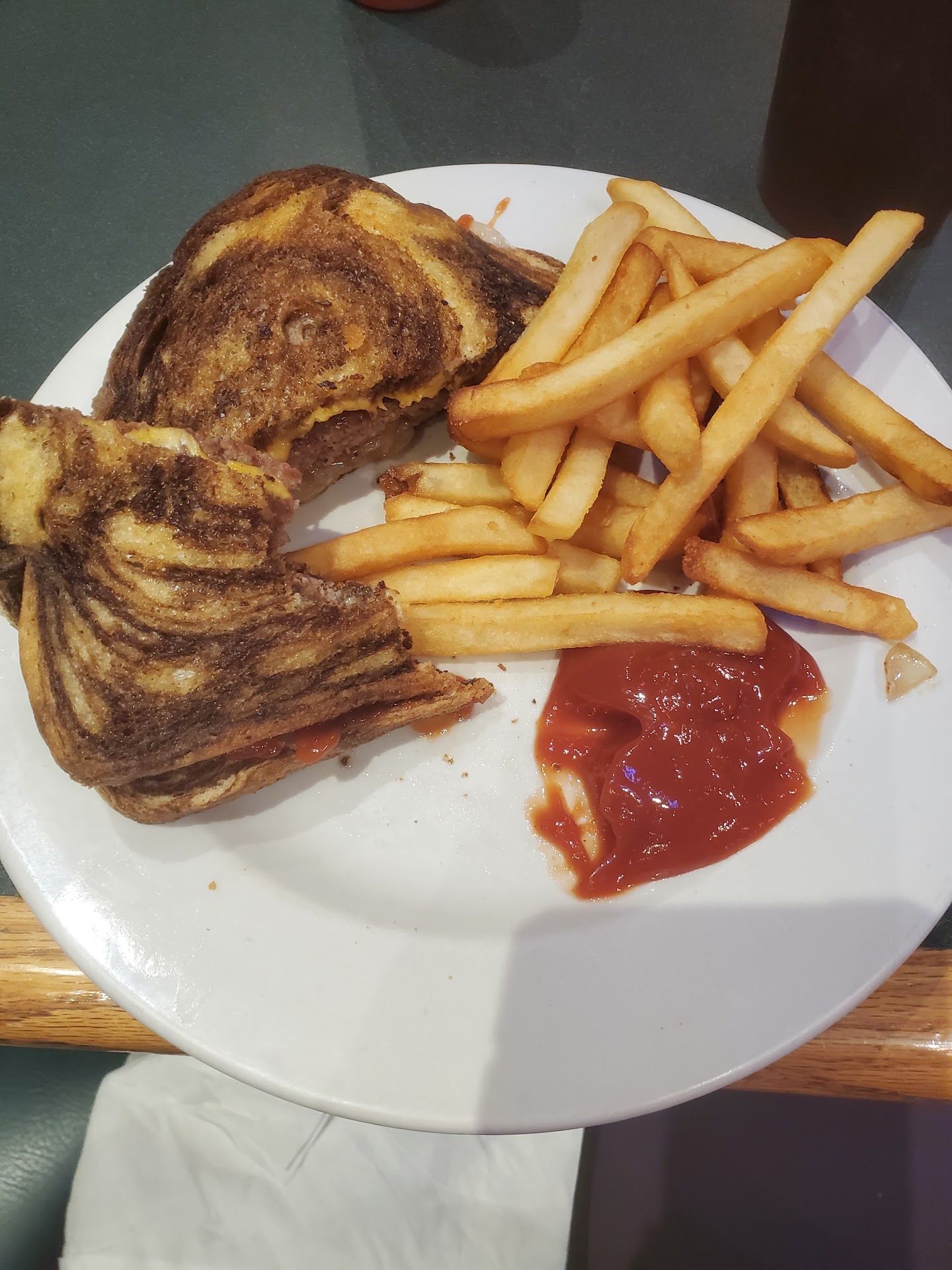 Read moreFast service and we were checked on several times. Probably one of the best patty melts I've ever had. Fries were perfectly done, too. Hubby said his burger was slightly dry but very tasty. Found it interesting that there was money stuck on the ceiling. Clean restroom! I'd co.e back if I...