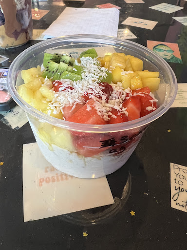 Manager had the employee empty the 1/2 oz of of cocoa nibs out the small togo container and we had to get the Nibs in the larger container with the acia. The manager said other will want fruit in separate container. I assured her I do not want fruit, only acia and Nibs and the worker had everything covered.