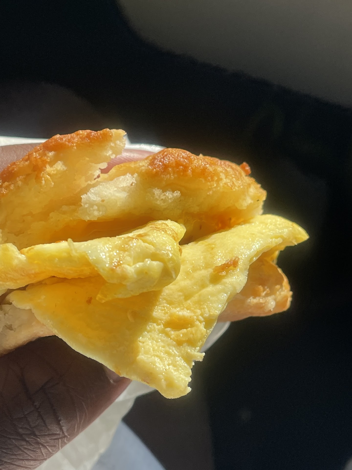 On Monday morning, March 26, I went through the drive-thru at this location and ordered a Cajun Filet Biscuit combo with a bun instead of a biscuit, adding pickles and mustard.
