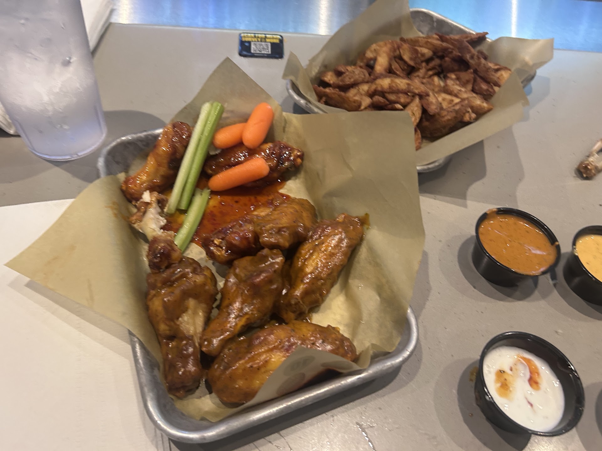 Read moreFood is good but the service has been terrible the past few times my family and I have been in, even when it isn’t crowded. Working in food service, I know things can get hectic when there is a crowd but there was no excuse for our experience today, especially since it was not crowded. Our waitress seemed like she wasn’t really paying attention and didn’t want to be bothered by us. It took awhile to get our drinks and food and when we finally did, we noticed my son’s food never came out. Anyone with a toddler knows how impatient they can get. As everyone is eating, we ask where his meal is and she says responds confused, as if we never placed the order-which we did. Ok, no big deal, mistakes happen. We continue eating and get about halfway done and she comes back and says that the fries are just being cooked-not to mention we all have to track her down to ask for refills and other items-she never really checked on us much. After I asked about my son’s food, she seemed to avoid the table for the most part. We all finish and realize his food still has NOT come out. I finally get up and find another waitress, who was far more attentive and helpful. They tried to tell her that they already sent the food out, which was a lie because otherwise, my son wouldn’t be having to eat off of everyone else’s plates. As I mentioned, the second waitress was far more helpful and had the food made to-go and taken off of our bill. The manager brought the food out to me personally and profusely apologized for the experience. He also verified that my son’s meal was taken off the bill. At this point, we also realize that my nephew was missing the celery and carrots that should’ve come with his meal. The original waitress brought out that and then we realized we had been charged for that and for extra wing sauce. The veggies are included at no charge and we have never been charged for the extra sauce before either. This is by far the worst experience I’ve had at BWW and it really makes me want to reconsider this as our family’s go-to restaurant. The manager again profusely apologized as we were all leaving. The helpfulness of the manager and the second waitress were the only redeeming qualities from our...