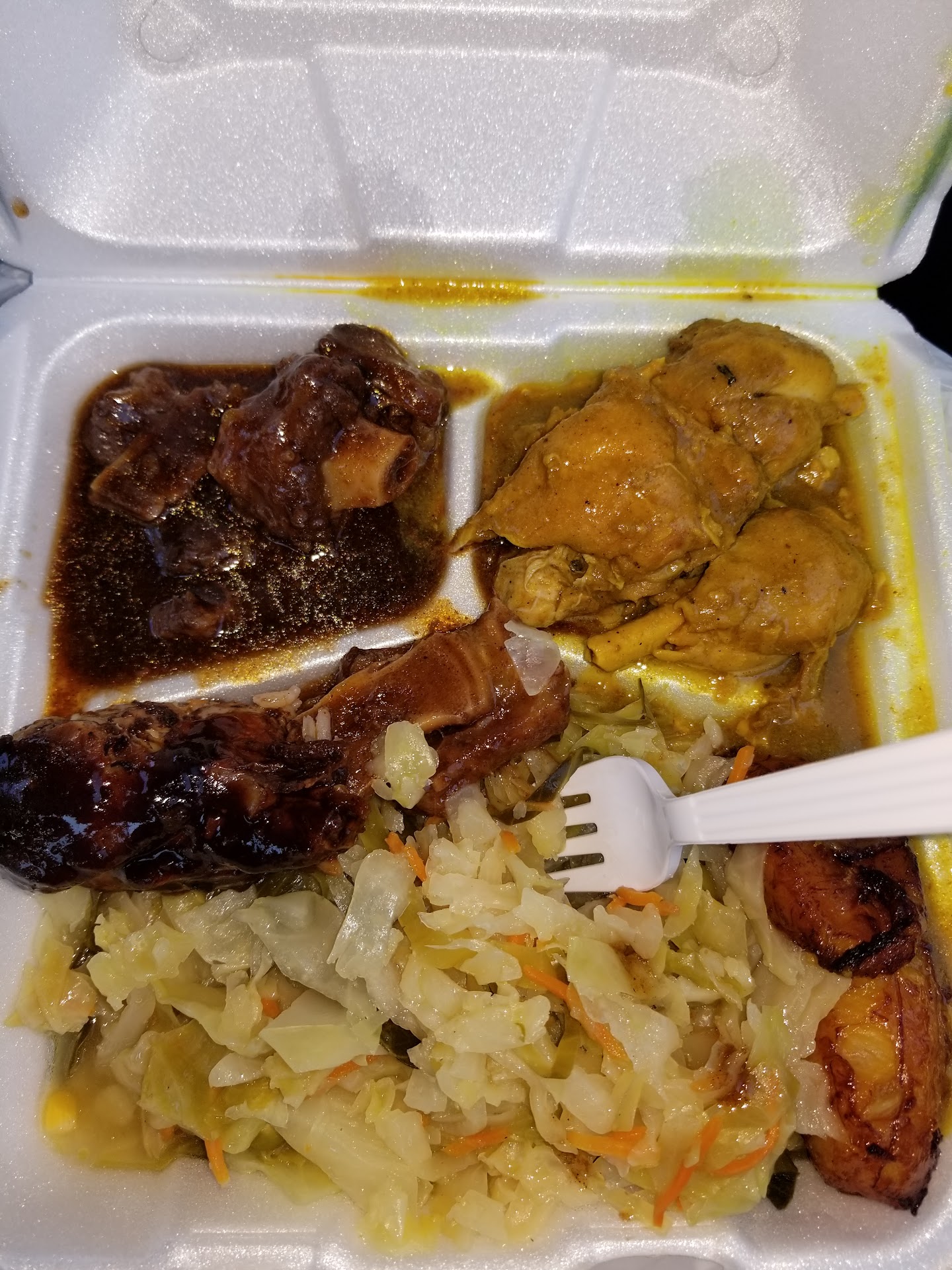 Just went out in the rain to eat here. Called first to make sure they do dine in. Got there and looked over the menu for about ten minutes as me and my wife decided what we will eat. Ordered my wife first, jerk chicken and oxtail large combo. Second I ordered curry goat and oxtail large combo. “Sorry sir, not enough for that”. Ordered large curry goat. “Sorry sir not enough for that.” Oxtail? “Sorry sir.” Don’t offer to put something together. Doesn’t offer other items. Just smile and say sorry. Now I know I may be asking for a lot, but how about go to KFC and they don’t have enough chicken? How about going into a pizza ship and no cheese? Better yet walk into Burger King and only to be allowed to eat chicken sandwiches. Then top it off charge me for 20 dolllars for one small a$$ tray of food. 730 and close at 9 and don’t have ish to eat. I will never go to this place or any other Caribbean hut again. From New York and this type of service or serving of Jamaican food ought to be ashamed of yourselves. How about suggesting what...