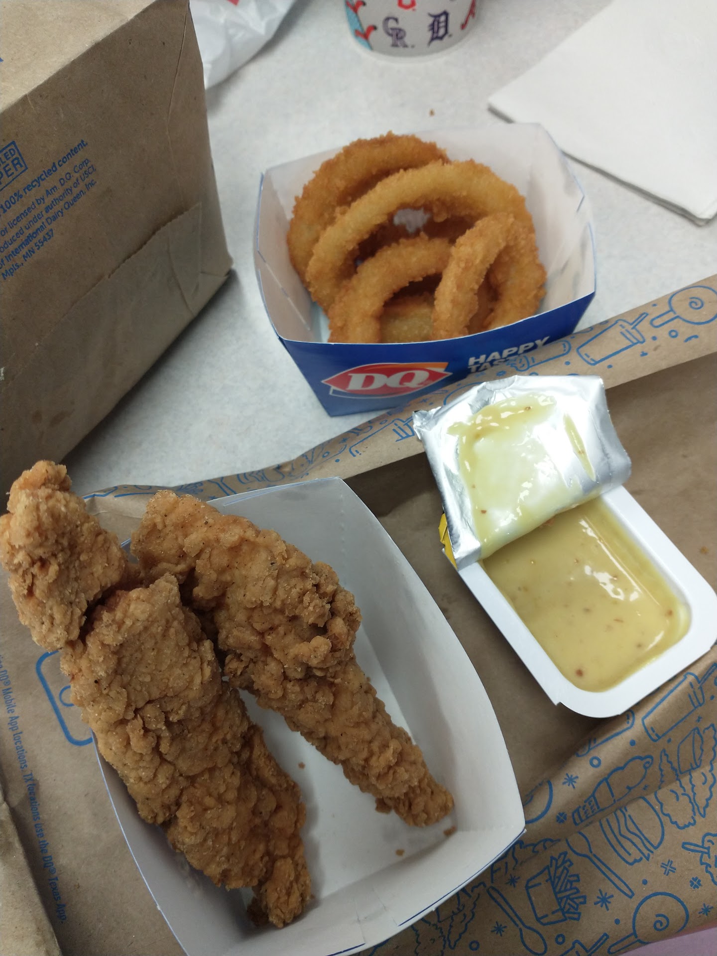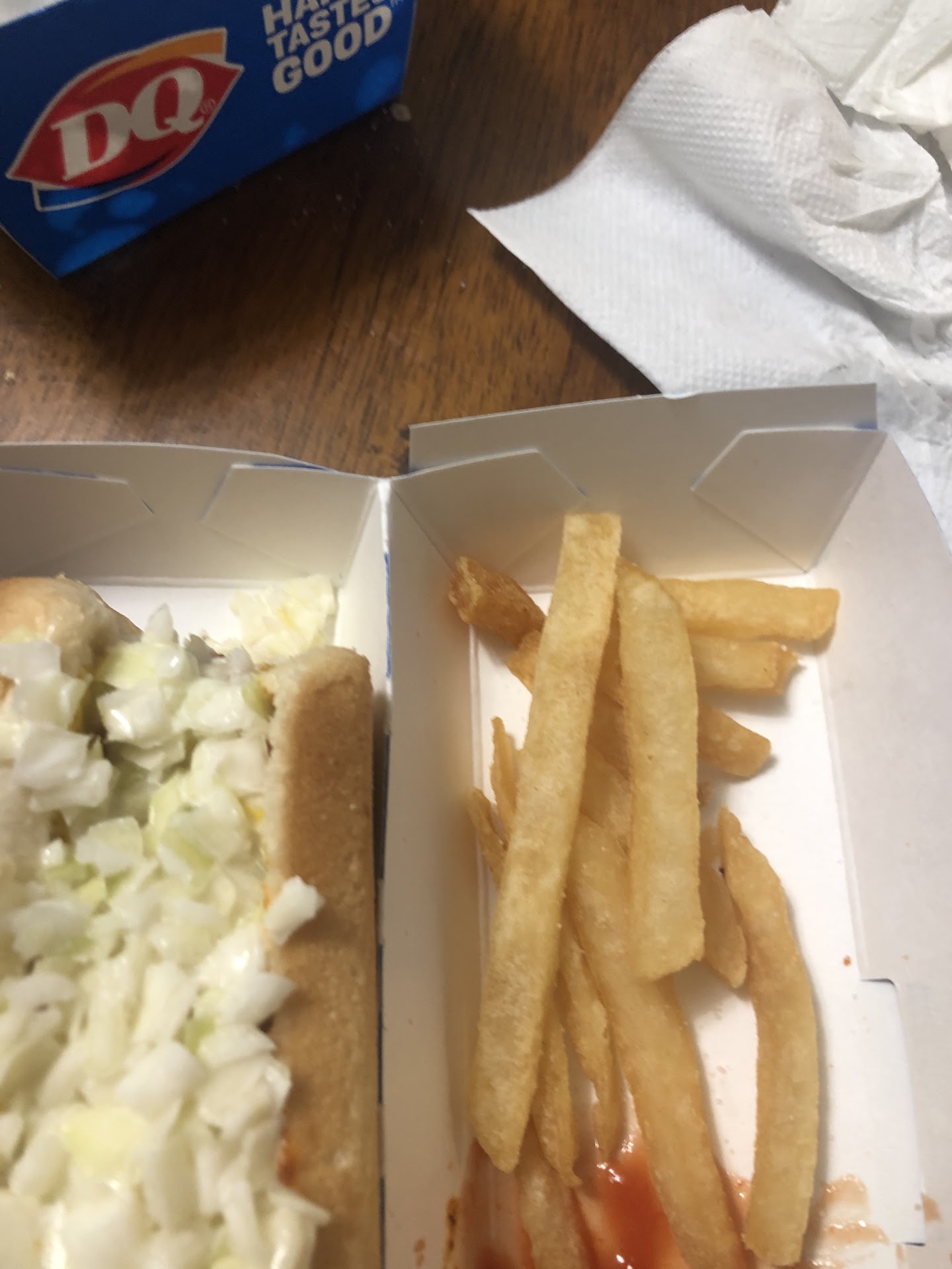 Read moreWish I had taken a picture of the cherry-dipped cone that the super nice lady put in a bowl for me upside-down! At first I wasn't even going to go here because the drive-thru speaker was down and there was a sign taped on the menu that said to come inside due to the speaker issue. When I parked my car, I looked inside and the place was PACKED. I stood in line for a second and almost walked back to my car just from the stress of how many people were around me. As soon as I went to walk out, the woman at the register says "I can take who's next in line!" - I looked around at everyone who I thought was waiting to have their orders taken, and everyone told me, "no, no, you're next, we're just waiting."....I was DEFINITELY anxious then, because if they were all waiting for food, then should I even risk ordering and waiting forever? lol....all these thoughts were IMMEDIATELY gone when I placed my order, explained to the lady that I had a relatively long car-ride home, and that I was worried it would all melt before I was able to give the icecream to my roommate. She responded like such a pro and I have no idea what the other people ordered, but mine was ready and in the PERFECT container as to avoid melting everywhere for the car ride back, in less than 2 minutes. I ordered, walked over to the area where you get napkins, and my order was ready...it was probably less than a minute, honestly. I appreciate this Dairy Queen so much. Friendly staff, excellent service, and one of the only cherry-dipped options around. ----- the last time I went here with my roommate, the drive-thru was fully functional, so this is clearly not a normal thing. And the quality of food and service here is worth getting out of my car and walking a couple steps lol. I do hope their drive-thru gets fixed soon, but for me it's clearly not an issue. Keep up the awesome job, DQ. I...