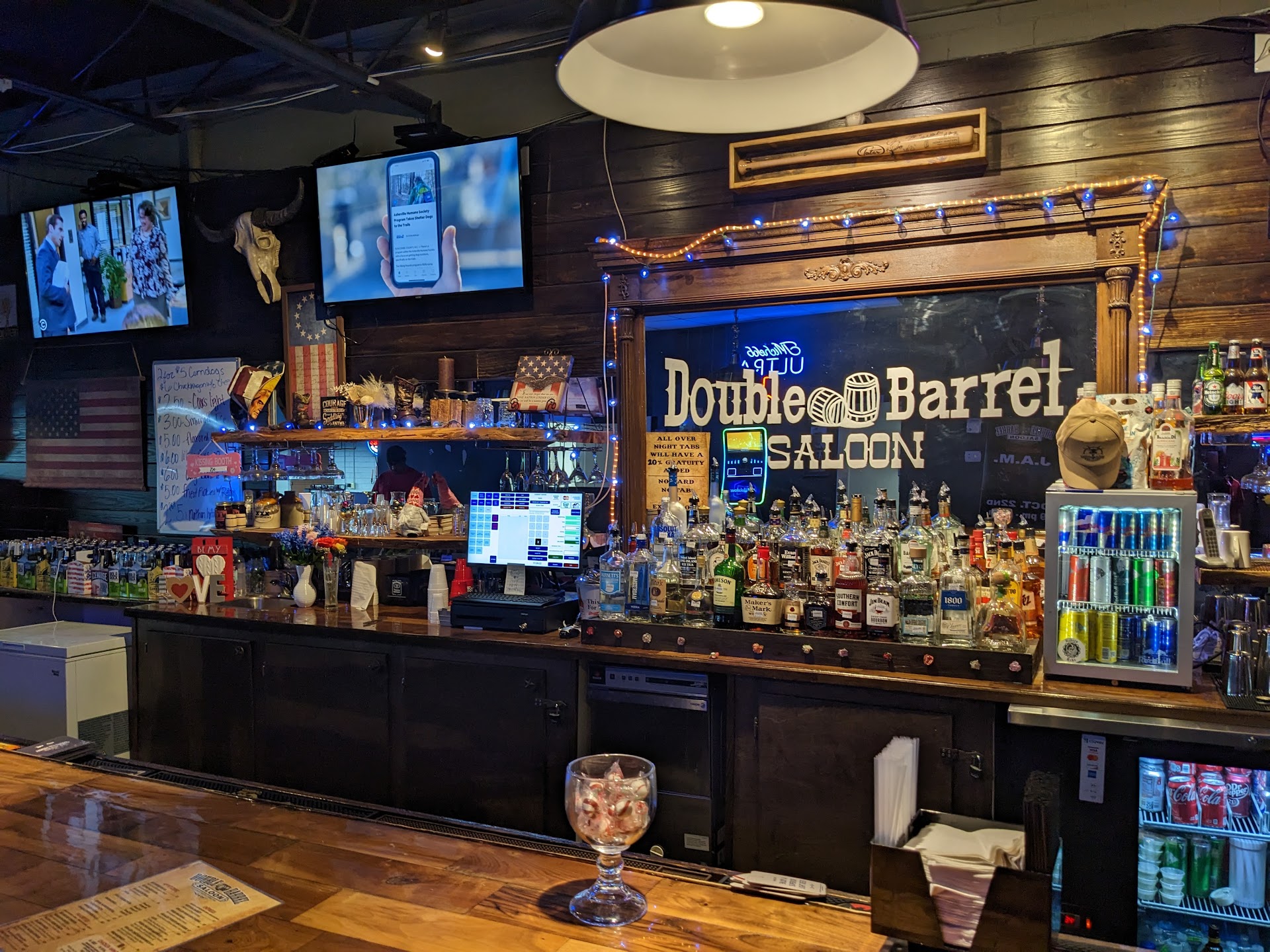 A Taste of the Wild West in Gastonia: My Take on the Double Barrel Saloon The Double Barrel Saloon in Gastonia offers a unique and spirited escape from the everyday. From the moment you walk in, you're greeted by a distinct, old-school charm that feels both genuine and welcoming. The rustic décor, complete with its Western-inspired touches, creates an atmosphere that's perfect for unwinding and enjoying a good drink. What truly stands out at the Double Barrel is the friendly and efficient service. The bartenders are knowledgeable about their craft and always ready with a smile and a suggestion. Whether you're a fan of classic cocktails or looking to try something new, they'll take good care of you. The drinks are well-made and reasonably priced, making it a great spot to enjoy an evening without breaking the bank. Beyond the drinks, the Double Barrel has a comfortable and laid-back vibe. It's the kind of place where you can easily strike up a conversation with fellow patrons or simply relax and soak in the atmosphere. It seems to attract a diverse crowd, all looking for a good time in a unique setting. If you're in Gastonia and looking for a bar with character, friendly service, and a touch of the Wild West, the Double Barrel Saloon is definitely worth a visit. It's a refreshing change of pace and a place where you can truly kick back and enjoy yourself. I'll certainly be back! Don't forget to say hey to there dog super friendly and loves...