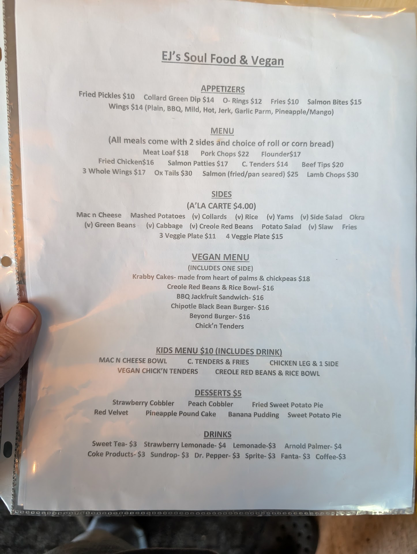 Ā Ā Ā Read moreEJ's Soul Food and Vegan has come a very long way in a short time with, dare I say, little support from the vegan community; I should know, I'm a vegan in the area and acted as their WFPB vegan consultant as they ramped up to start up thru the first 6 months. I trained both back and front of house teams (restaurant biz is very high turnover) and brought in well known vegan activists and entrepreneurs (many which she worked with) to talk to staff pre-opening about how important it was to recognize veganism as more than just a food preference and the value you of it for wellness. The owner isn't vegan but has never claimed to be, which is why she hired consultants so that she could do it properly. While they aren't vegan they're fully committed to listening to and complying with is needed to ensure no cross contamination whatsoever in every quadrant of their kitchen. From separate prep tables, sinks, fryers to separate shelves in walk in cooler. They are now being bashed for not having vegan desserts when she made them both in house and hired a vegan baker to make them and suffered tremendous product loss for a long time because vegans don't come often. Therefore, she did what any business owner does when something is hemorrhaging money; she removed it from the menu. The main buyer of EJ's vegan food is actually non vegans with the top sellers being a healthy vegan Krabby cake made with hearts of palms and chickpeas and baked not fried in the oven and her creole red beans, which include a little field roast apple sage sausage (vegan). Her collards, yams, rice, cabbage is vegan, creole red beans, crabby cakes w/vegan remoulade, cole slaw (the only mayo ordered in the house is vegan) BBQ jackfruit. She had more vegan items including vegan chicken n waffles and a beyond burger with a vegan bun and alll of these things stay b/c they cross sell to non-vegans or have a good shelf life-this is the restaurant business. What's sad is that vegans bash this lady at all with no concern about how dedicated she's been about keeping things 100% vegan and while they may not know about veganism they respect vegans; even as vegans continue to disrespect her. EJ's vegan options are truly that and their vegan food is well seasoned, full of flavor and not cross contaminated - all the vegan bashing does is run people away who may become vegan in the future. They are a place for sharing memories, spending time with family-I'm proud of EJ's growth and believe in their mission to bring folks together - vegans don't bash her, support her and make requests, she is very...