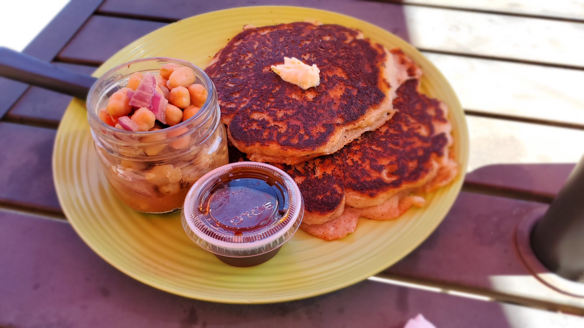 Overall an interesting place that is hidden behind an organic market. I usually don't eat a lot of vegetarian/vegan food but what I have had has been good. I had high hopes and they were met by the majority of items. I had a variety of things; Oat Waffle: crispy, great taste and texture. The fruit compote and cinnamon butter really tied it together Breakfast platter: The white bread was okay, it wasn't toasted that well so slightly disappointing, the scrambled eggs were good and the turkey bacon was okay. Mushroom cap sandwich: so the description made it seem as if it was gonna be a big mushroom caps as the buns and then of course condiments in the middle. It was a mushroom cap, with condiments in between regular buns. We did add a protein, my only issue the mushroom was very vinegary, I'm assuming they marinate the mushroom in apple cider vinegar or something to obtain a certain texture but it completely took away from the sandwich with such a harsh taste. It would be better to marinate it, maybe rinse it and then do a seasoning and quick grill. It needed something. Vegetarian Benedict: actually very good, the eggs were done properly and the sauce actually had a good taste. Biscuits and gravy: It was okay for a vegetarian option... definitely doesn't compare to the real thing but I don't think it's a bad substitute either.