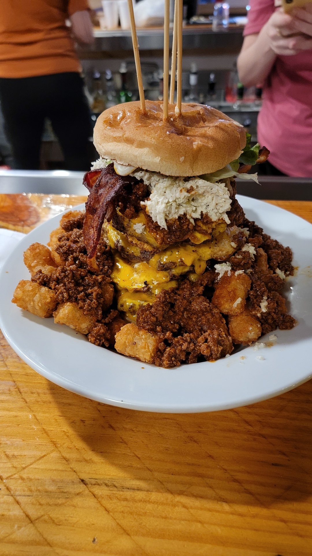 The Red-Neck Rueben caught my eye. The menu says it’s a seasoned burger with cheese, sauerkraut, homemade chili and their Whiskey Sauce. I couldn’t taste the the Whiskey Sauce or the flavor or the sauerkraut. The chili was meh. I make much better but I question why it is here at all since it covers up the flavor of the kraut and sauce. I would not order it again.