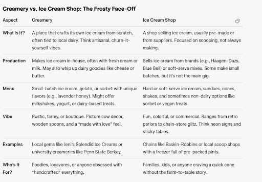I stumbled across this place listed as a “creamery” on Google, but it feels more like an ice cream shop—and a pretty decent one at that. If you’re expecting a true creamery churning artisanal ice cream from local dairy, you might raise an eyebrow, but as an ice cream spot, it’s fun and not half bad. The flavors are creative, and the scoops hit the spot, making it a solid stop for a sweet fix.