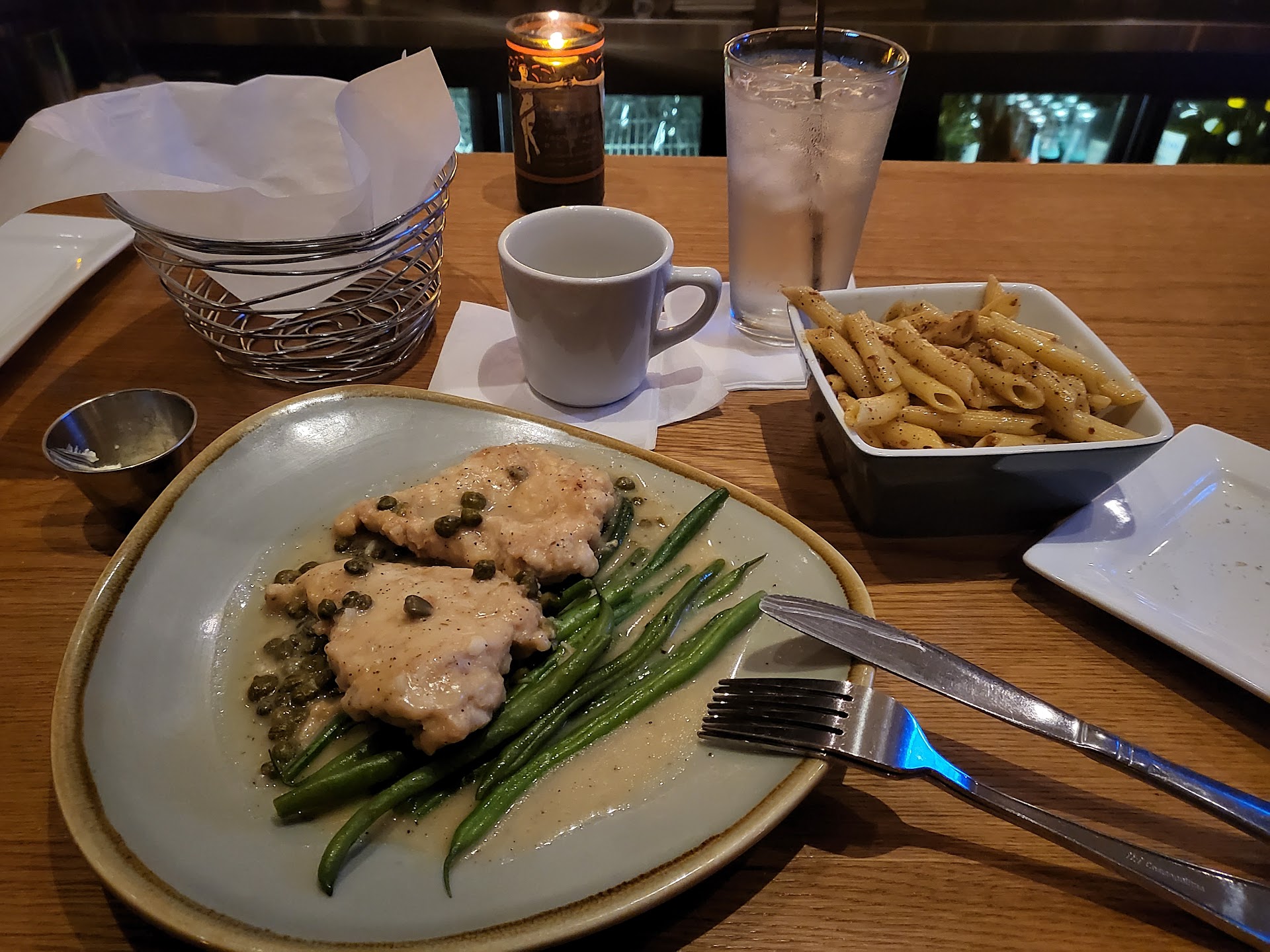 A great special occasion restaurant, my wife and I went for our anniversary dinner and we both loved it. Nestled in what feels like a small town, this place is a hidden gem. It's got a great modern rustic feel, comfortable, not crowded or packed in like sardines. The food was exceptional, my wife and I both agreed. I had the chicken parmesan, a staple Italian dish I normally order at any new Italian restaurant as a barometer for whether I might like other meals. It was remarkably good! More traditional which I prefer - not dressed up with fancy spices. My wife had the salmon and raved about it! The service was exceptional as well - everyone smiles and was helpful. Our waitress helped my wife pick a perfect wine. We ate indoors on the main floor but there was a really nice patio that would have been perfect too what with it being a beautiful summer night. Worth the drive if you're considering it, though beware it is a bit pricier, largely commiserating with...