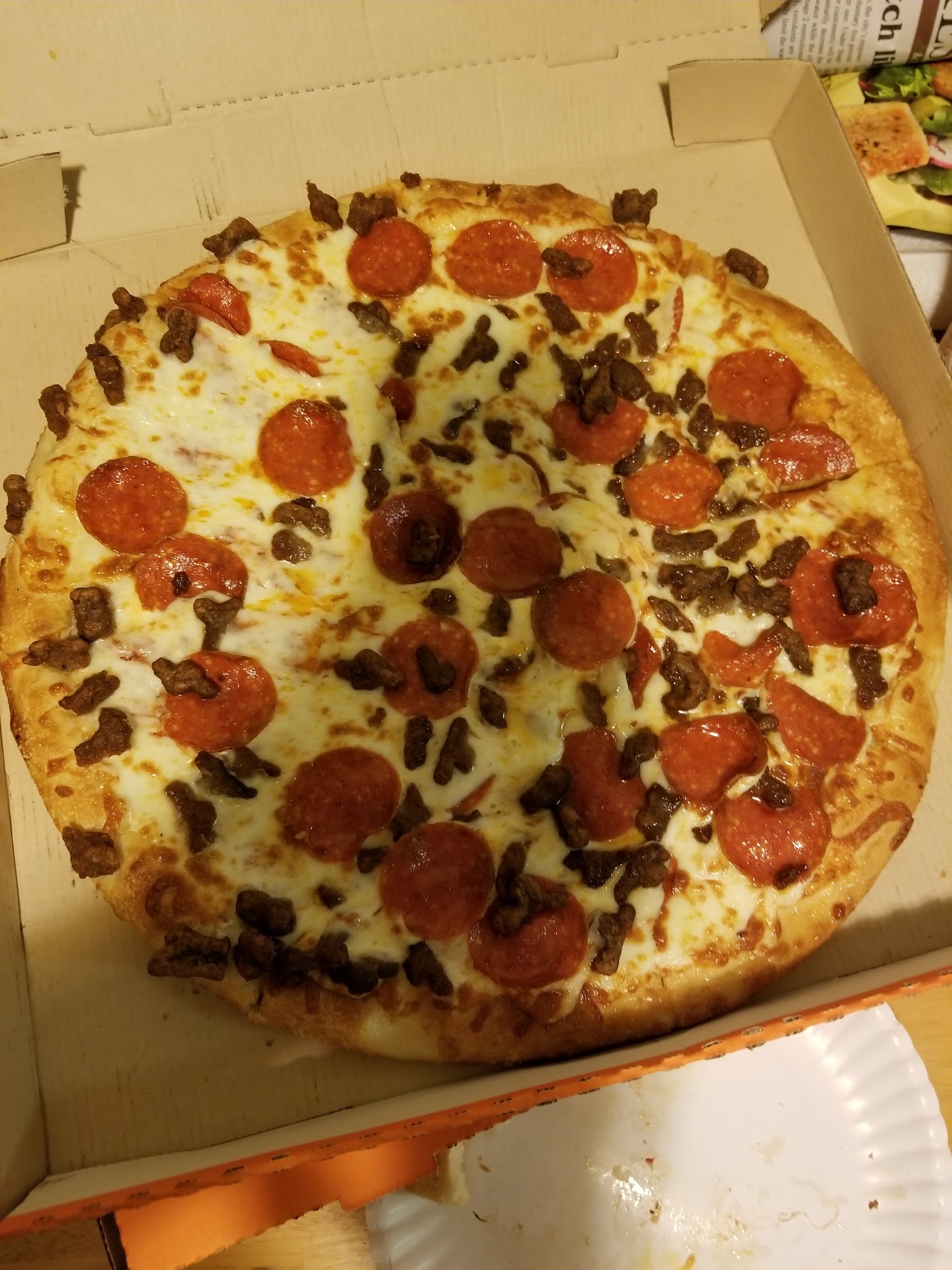 Read moreI liked little Caesars at first but now they act like they don't care. They charge extra when you say easy on the sauce. They charge when you ask to substitute beef for bacon. We cut 2 extra most bestest pizzas. One was an ultimate and the other is the 3 meat. The extra most bestest pizzas have e tra cheese and toppings. This is how much toppings gas you get on the extra most bestest 3-meat pizza. They have gone down hill from when they...