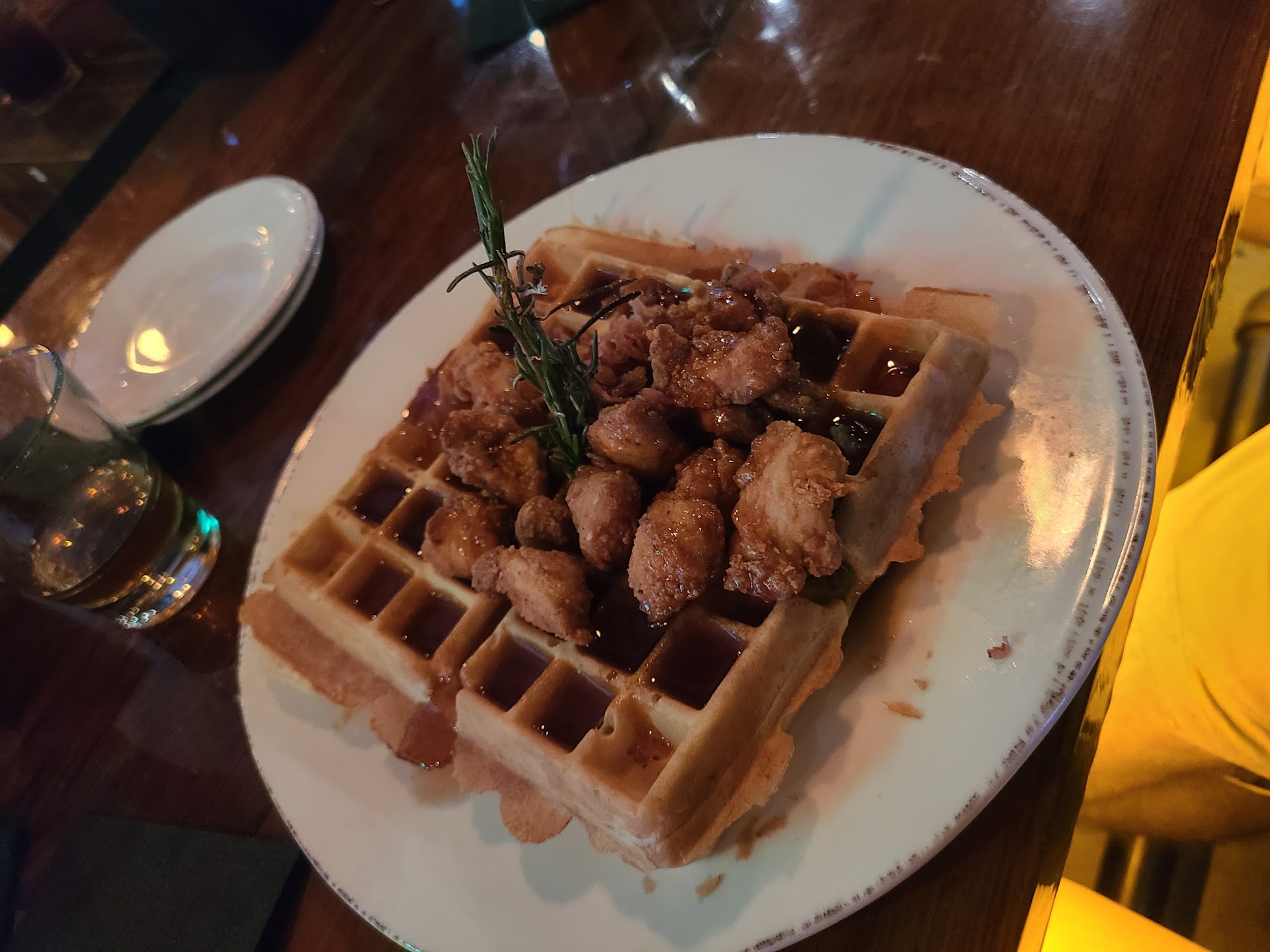 We ordered the chicken and waffles since it seemed to be a hot seller per the menu. I know it said spicy syrup, but hot damn it is a LOT spicier than I would have guessed. I've had spicy chicken and waffles and can normally handle it. But I couldn't even eat a section of this waffle. Outside of my particular pallet, the cut of chicken was not good. It was very dry and ours had a lot of gristle 𤢠So I left hungry and disappointed.