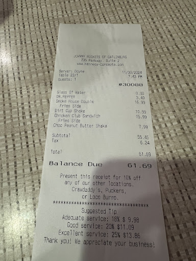 I’m sure this food would have been great IF I had received it. However, I ordered through Uber Eats and this merchant said that they don’t associate with Uber Eats. As of this review, the merchant still shows up as an available place to order from. We spent $126. My delivery driver showed up to the store to get my order and, after waiting for some time, was told that Johnny Rockets would not be making my food because they cut ties with Uber and no longer had the equipment to accept and make my order. My driver called me and told me what she was being told so I called the manager directly. The manager told me that she spoke with Uber on Monday, June 10th to eliminate their partnership and then the manager proceeded to ask me how I suggested that she stop receiving orders. She then told me I would have to take it up with Uber. So, I canceled the order to get my money back only to be told that the merchant had already accepted my order and I would not receive my money back or my food. I went through 5 different representative that all told me the same: the merchant had already accepted my order so they could not refund my money. I have begged Uber telling them that JR could not have accepted my order because they didn’t have the equipment anymore. Uber says they did accept the order. My driver thought JR just didn’t want to make the food because it was getting close to closing time (an hour before closing). I don’t know who is at fault. This is between JR and Uber. What I do know is that my family was charged $126 and I’m without food, without a refund, and my babies were starving after all was said and done. The resolution could have been easier. Until JR no longer shows up, ask the driver what the order is, make the food so the customer can be taken care of, and JR deals with Uber behind the scenes. This should never affect the customers like it has. I know Gatlinburg is very busy so I know this is happening to a lot of people. I’m sure JR is quite frustrated with this process but a businesses frustration should never be seen or felt by...