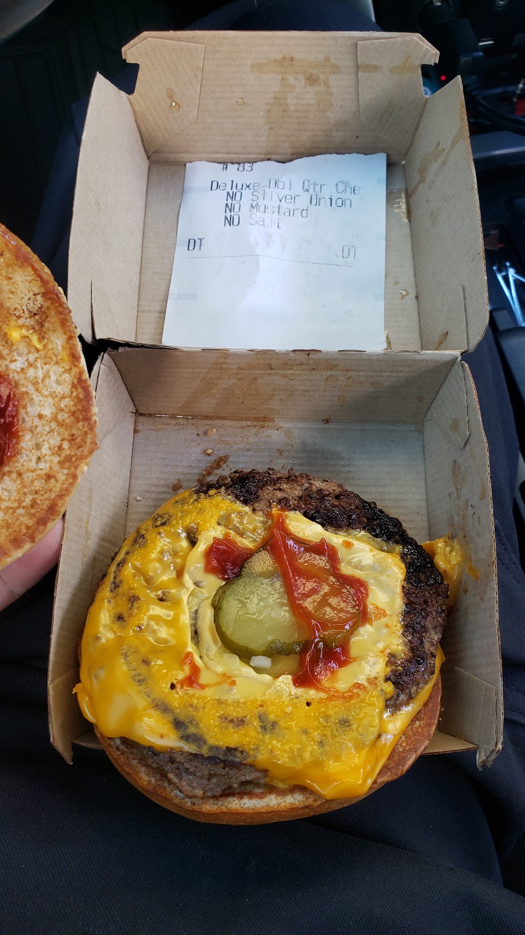 We explained that we had two orders, but only received one. The woman at the window didn’t know how to handle this so she got a coworker (not sure if it was a manager). Without even asking for details, the second staff member came over to the window and told us since we only provided one code at the speaker, we needed to go back through the drive-thru. We then showed her both receipts which is when she, TOO, walked away and got a THIRD staff member. This member was the RUDEST. He came over and asked, “what happened?” in a tone that implied we were causing problems. We explained for the third time that we ordered two orders, but only received one. He walked away, then came back and implied that we were trying to get our order twice and asked if “we moved” (came back through the drive-thru a second time after really receiving our food). We told him we hadn’t moved. He walked away AGAIN, then came back with the order and made a point to tell us they “already made the order”, again implying that we were trying to get our order twice. We pulled out of the drive-thru so as not to hold up the line anymore, but realized they left all fries out of the order. We had to go in to ask for our fries. In total, we spent 25 minutes picking up an order that was preordered through the app. We finally made it back to our cabin rental where we realized they only put meat and cheese on the burgers and left off all other ingredients. Whether or not this part was intentional is unknown, but there is no excuse for the disrespect and unprofessionalism.