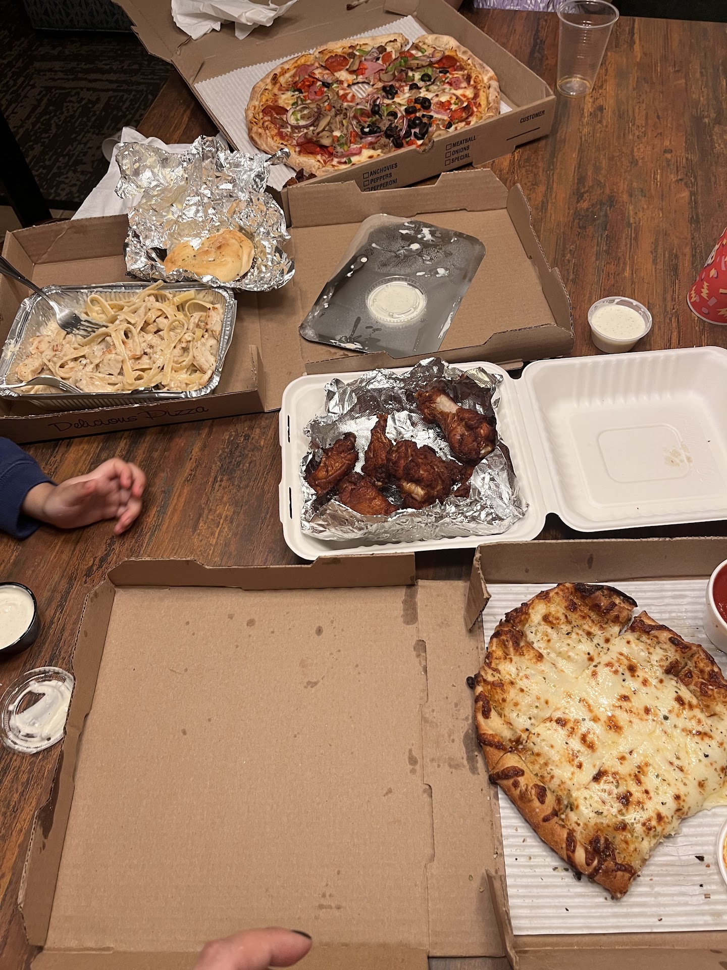 We ended up having to pick up our order ourselves. Upon arrival, the staff member immediately went to the back. When she returned, I informed her I was there for the order under the name Savannah. She disappeared again for another 10 minutes, despite the food already being prepared. When she finally returned, she placed the food on the counter and told me we would receive a refund for the inconvenience, but only the price of 1 pizza, then walked away without further explanation.