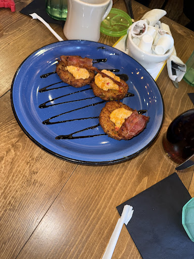 Read moreFirst off, the outside and inside is completely adorable especially for chicken lovers like me! Took tons of pictures. They have a great selection of morning adult beverages. I tried the Bourbon Iced coffee and it was delicious. I took one star off the food because it was just lukewarm when it arrived. We discovered it's a new place so understand some growing pains, if they can figure out making sure things are still hot when they arrive, this will become a favorite for folks visiting Gatlinburg. The dished we ordered were excellent as far as taste. My husband got the fried chicken with gravy and it was the best we've ever had. I ordered the Ham and egg on a cathead biscuit, the ham was out of this world! Homefries also had an excellent taste, just wish they were hot! Service was great and we didn't bother complaining because the food was delicious. Overall a great stop and one of our faves, just hope they can figure out temps! Oh and merch would be a great addition. I would have bought a bunch of their chicken themed shirts, decor if...