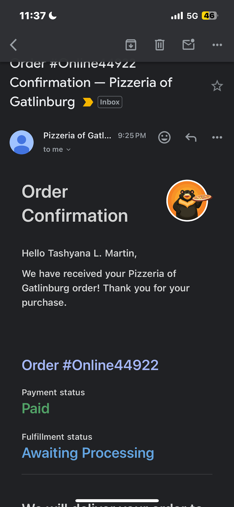 Read moreSo I’m sure this may not happen regularly but people paying for delivery should know the truth about this establishment. Came into town for special event lasted all day. Wanted simple quick easy for dinner- pizza delivery- found the place had good ratings. Simple large pepperoni pizza for kids- website has you enter in delivery address. We stayed at Hilton vacation club bent creek. Website stated delivery within 30-70 mins. Cool ordered at 9:24. Called at 10:25 and again at 10:35 to see if driver lost running behind. Left two voicemails. I go pick up snacks and noodles from closest gas station for kiddos to eat, drive to restaurant to just cancel order. Delivery driver calls right when pulling in at 11:05pm saying they were really behind and he couldn’t find the place. Went inside explained reqest to just cancel order and front staff ladies didn’t even so much as apologize just went to get supervisor and explained when he came to front “well, he was only 20mins late”. To her that may be standard but when your kids ask for a meal that you pay for you expect it to be delivered by the eta stated online which is was not. The manager then came to the front and said our delivery time would never say 30-60 mins only 90 plus on a weekend which I have a screenshot that says otherwise, they knew it too, how else would the lady have known” 20 mins late”!!? Then the Manager says we don’t normally deliver to your area. I stated it’s a 15 min drive straight with no turns???? If your website said no delivery to this address, no problem I would have picked up. If you were running behind and you called back from my messages, no problem but this was bad business. He said well you’re here and my driver is trying to find you so how much since does that make??? Overall excuses excuses excuses. I said I can go without food anytime, but my kids shouldn’t have to and you offering to remake food almost two hours later, unacceptable. No compassion, no empathy, no making it right when anyone in customer service knows the customer is always right. Unbelievable. 8.99 delivery fee 20.00 pizza- total 31.08 for nothing but bad service and inconvenience. The only honest one was the driver. Save yourself...
