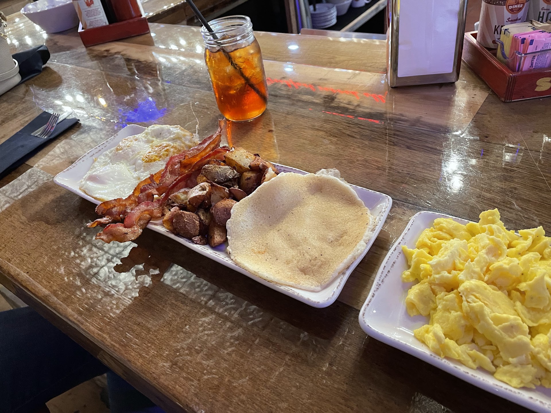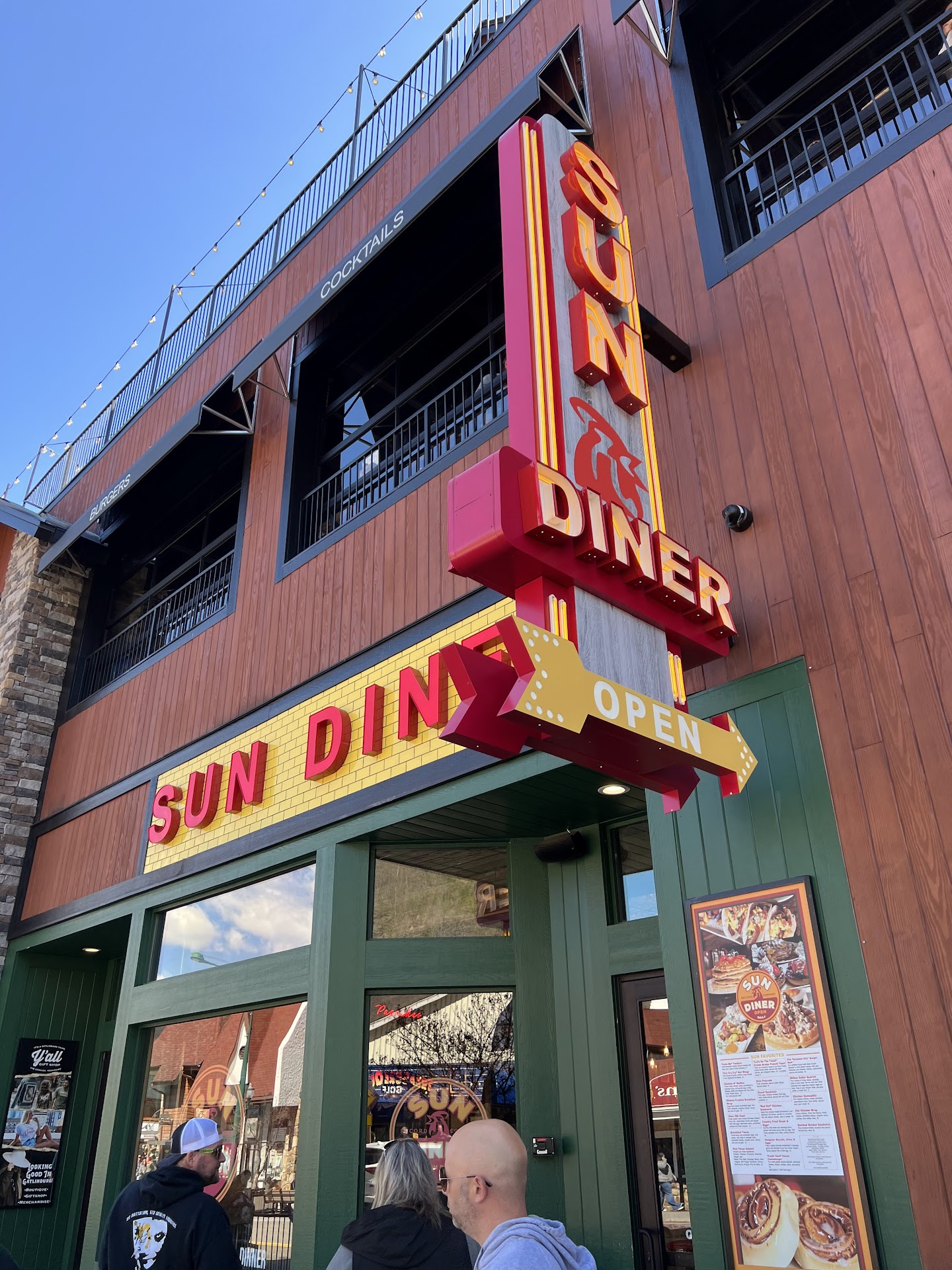 Ā Ā Ā Read moreDaughter chose Pancake Pantry to visit for breakfast, but the line was out the door. She quickly pivoted and chose Sun Diner. There was no line or wait. We were seated quickly and ordered. I chose the chicken and waffles with the gravy and syrup on the side. My child ordered pancakes with fresh fruit. I saw my plate get placed on the two tier warming rack and watched it. After about three minutes, I started the stopwatch on my phone. I saw no less than two different servers put their mitts on my plate and ask questions to the staff about it. Guessing something went wrong with my daughter's plate, so mine just sat there dying in the window. 12 minutes later (9 on stop watch not including the three minutes that passed prior to starting it) my server brought both plates to us. I mentioned that I just sat here and watched my plate for the last 12 minutes, and they did not have to wait for both to be ready. Our Server just shrugged and offered nothing. On top of all that neither dish moved the needle. The best thing on my plate was the waffle itself. The gravy was unimpressive, chicken was not seasoned well and the syrup was pretty good. My daughter ate a little over half of her pancakes. Loved the decor. I was able to point out the legends performing on the big screen to my kid. I visit the area twice a year on average. I won't be going back if the staff thinks it's a great idea to leave food under the heat lamps (I watched my plate be moved from the top shelf to the lower shelf for some reason š¤¦š¾āāļø) for extended periods of time. I was in town for a week and the money spent at Sun was easily the most regrettable...
