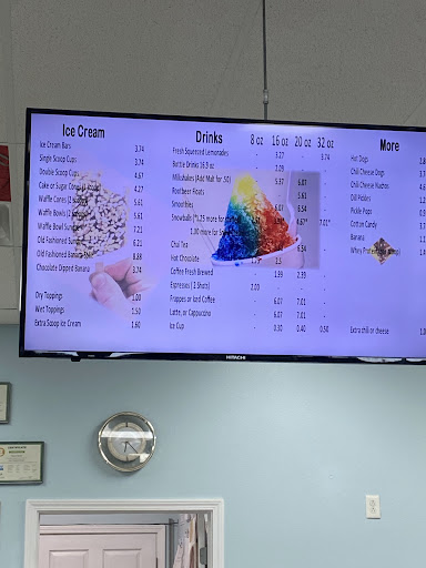 Read moreLove the variety of items. outstanding customer service. Fresh squeezed Lemonade, the famous dipped ice cream bar with toppings, wide variety of coffees, iced and hot, many flavors of Blue Bell Ice Cream and New Orleans style snowballs! If you need a bite they have hot dogs with chili , cheese, and other toppings, and nachos with jalapenos if you like! Everything is done in full view. Give these folks a try After the ball practice to treat the kids or after a day of cleaning on the yard or just if you want to try a local business! You will not be disappointed! And don't forget to look up at all the cartoon characters' on the ceiling, each one personally done by one...