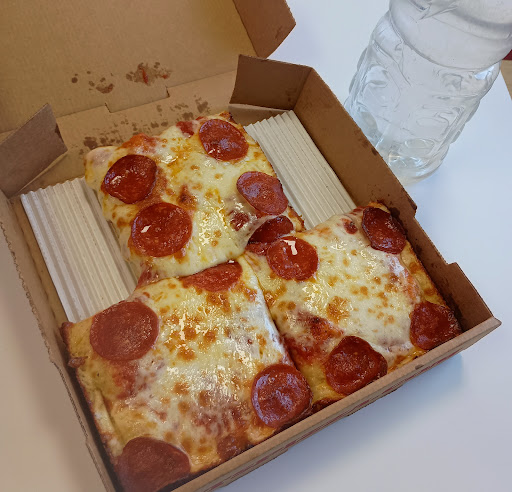Jets pizza is always great and this was no exception. Inasmuch as service is concerned ..... the folks here are extremely nice and friendly and have good personalities. BUT, Jets locations are always supposed to have slices ready for walk-ins. I came in and asked if they had slices ready, and the guy said, I'll check ... so he walked back to the kitchen, came back in a moment, and said, "4 minutes". So I ordered and paid for 2 slices. 12 minutes later there was still no sign of my slices. So I went back up to the counter and told them I was still waiting for my slices. They seemed to have no recollection of me or my order. Had to ask me my name again. They said, "just a minute", so I waited 3 more minutes and they finally brought me my slices, with an extra one added to make up for the wait. So I waited over 15 minutes for slices that are always supposed to be ready and available. Not such a terrible thing, but an inconvenience when I am travelling and every minute spent waiting means another mile lost. I really like that they have two tables with chairs and napkins that you can sit and eat at. So much better than eating...