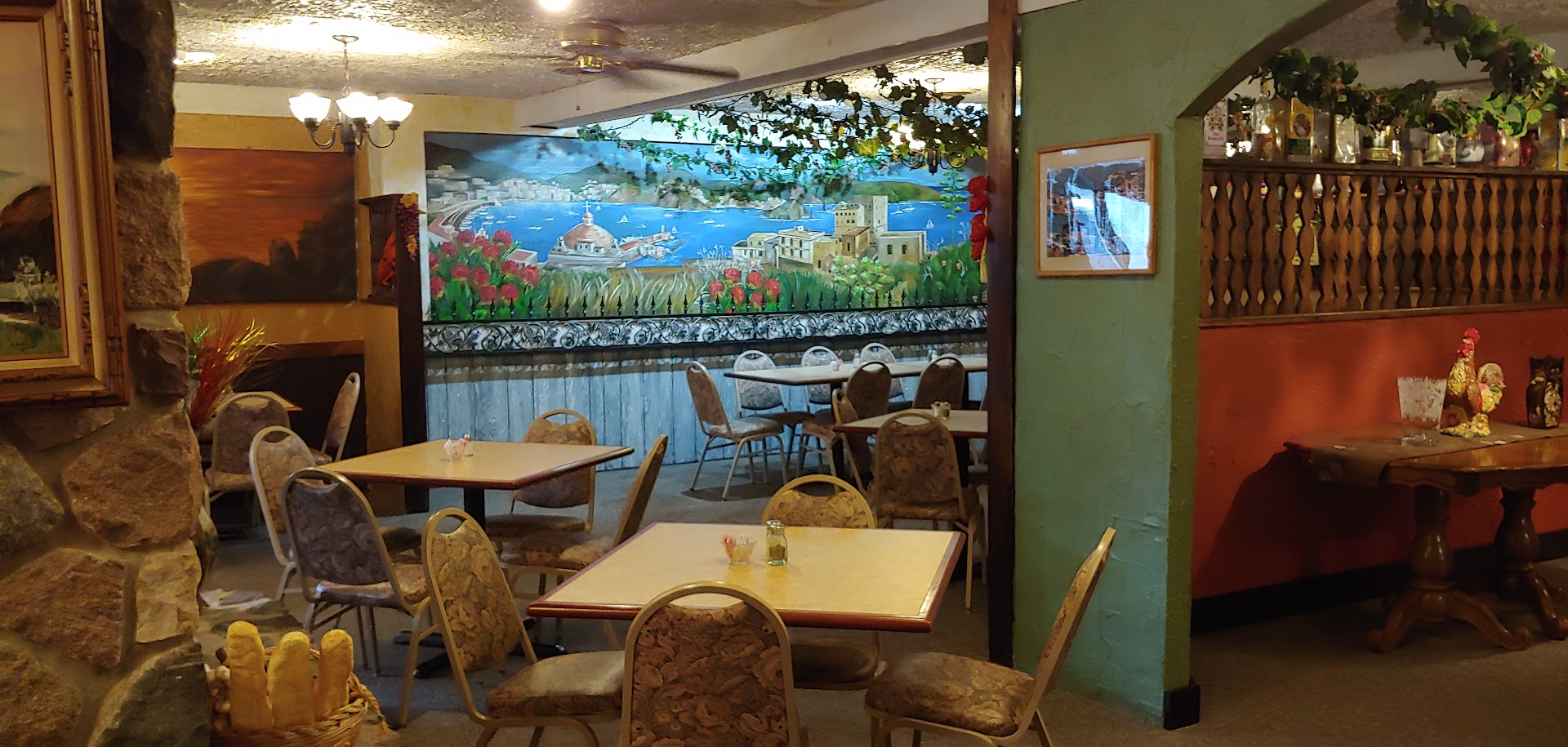 Let's start of with ambiance: building is old, and needs some updates. You can keep the Italian theme for sure but can still update. From exterior to interiors. Bathrooms need updating, carpet, brighten up the place. Old air vents in the ceiling look like their about to fall on you. Remove the tacky Christmas decorations, it's February!