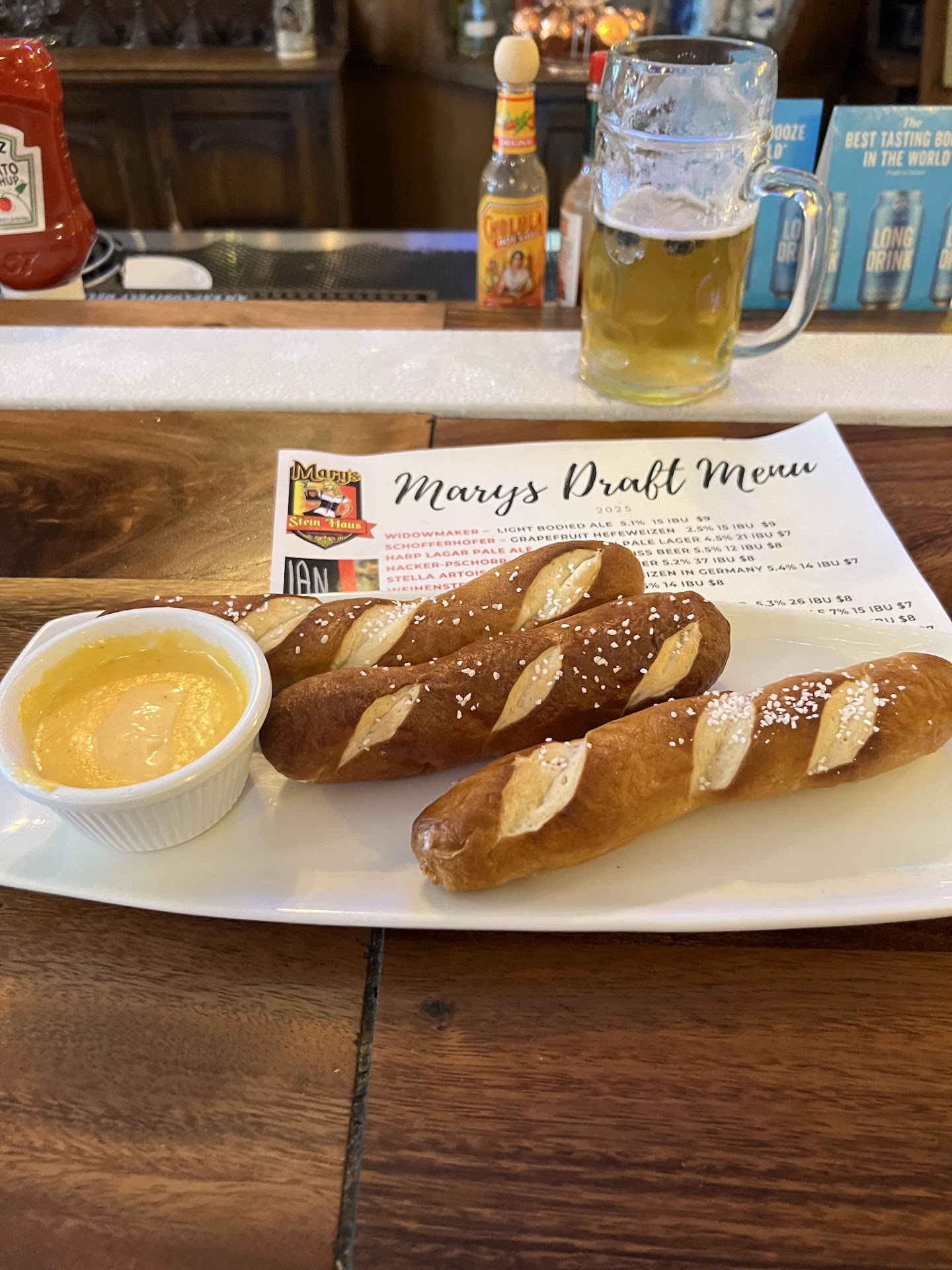 Ā Ā Ā Read moreHad a craving for some nice warm pretzels and beer cheese so I went here, based on a friendās recommendation. No one was behind the bar (where I choose to sit so I wouldnāt take up a table for just one person). After a while a waitress who looked rushed walked past and asked me if I needed a menu. I told her I wanted a Petoskey blueberry crush beer and some warm pretzels and beer cheese. She got the beer right away. About 15 or 20 minutes later I got the pretzels and cheese. The pretzels werenāt warm when I bit into them and the cheese was lukewarm at best. Very disappointing. I wondered if thatās how they serve them ⦠or how long they sat before being brought to me? I was there at 1:30; not during a busy lunch or dinner time. Suggest they serve them warm ā¦. or try to have more staff, if thatās why they werenāt...