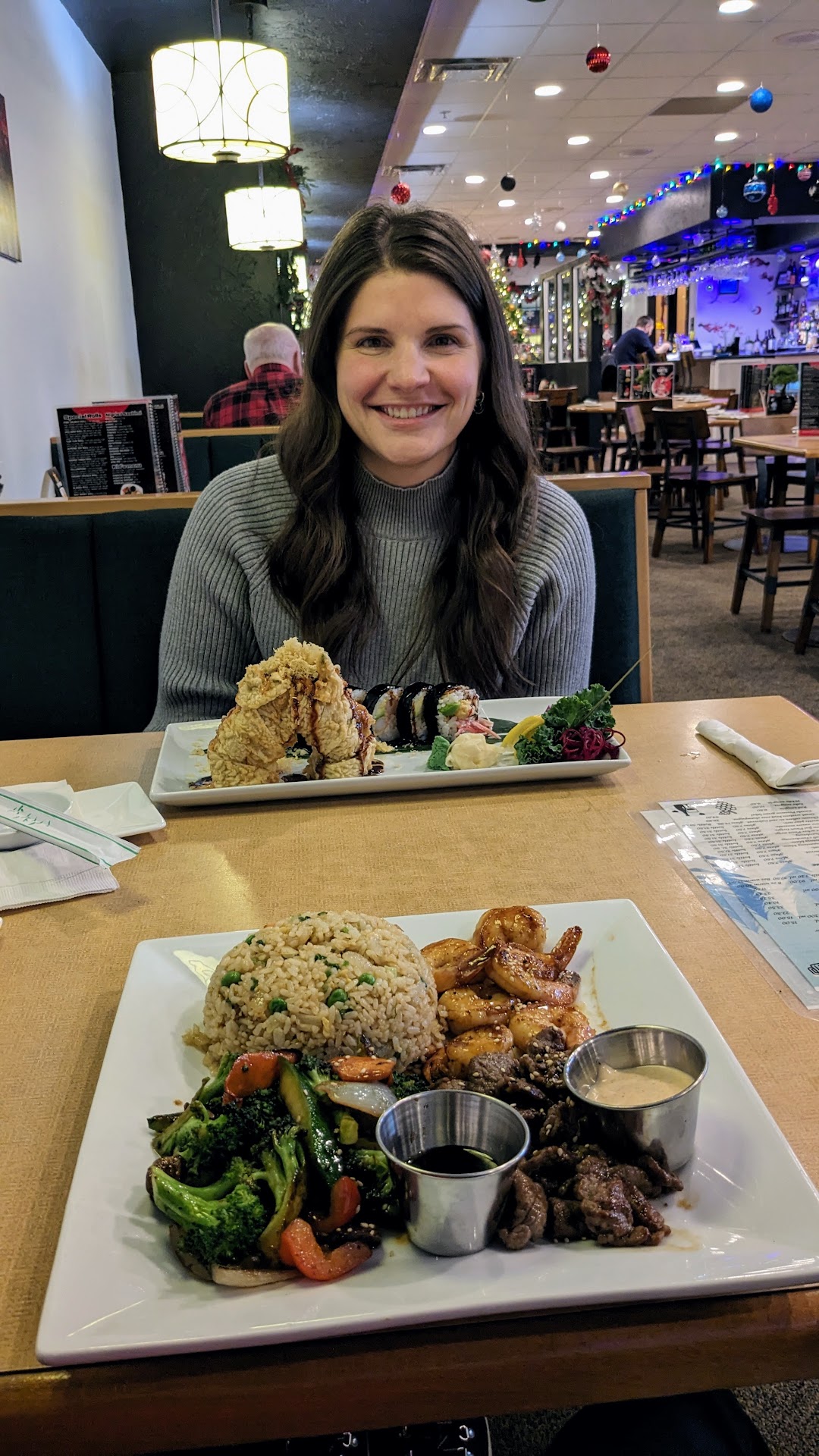 My wife ordered fried rice, and they brought her white rice, which she was willing to eat (the server did not ask if everything looked correct, she dropped off the food and immediately walked away) until she realized it was covered in what we think was teriyaki sauce, even though there were two cups of sauce that came on her plate.