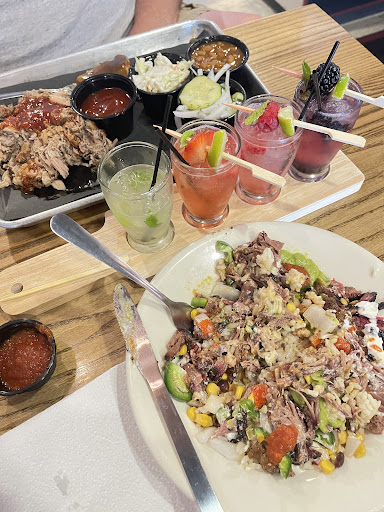 Ā Ā Ā Read moreWe had an amazing lunch at the iron pig on 8/17/24. My husband had the pork platter with sides. I ordered the brisket rice bowl. We shared a mojito flight. Yummy smokey flavor. The bowl had a generous portion of nicely seasoned smokey brisket. Just enough jalapeƱos to make you start to sweat a little bit. Served with a side of fresh mild salsa. The flavors were spot on and fresh. I would go back just to have this dish. Pulled pork in bbq sauce was a perfect balance of sweet/salty smokey pork. We had our favorite sides. The cold pickled onion and cucumber salad. Crunchy, cool, mild side to help cut through the rich delicious pork, and jalapeƱo cornbread muffin with a sweet glaze that was a spicy sweet delightful surprise. Our mojito flight was perfectly made. Kiwi, strawberry, raspberry, and blackberry mojitos decorated beautifully, and served in small glasses on a flight board. You could taste all the flavors of the ingredients. Fresh mint, white rum. and berry forward. Their brisket and pork were both overcooked. It didnāt matter. The quality and freshness made up for any flaws and does not turn us away. You walk in, grab a menu at the door. We choose a table to look over the menu. Got our own water by the get your own soda machine, and to go boxes. My husband went up to the counter to order and pay. Our food was brought to our table fast, fresh and hot. We grabbed our own to go container and packed our own food when we were ready. It was all at our pace. There was plenty of room and no waiting at 1:53pm visit. The small bar was full. I would like to hang out in this place for drinks. Nice atmosphere. We felt comfortable, relaxed and welcome. We had an excellent visit and will return on future trips in the area or...