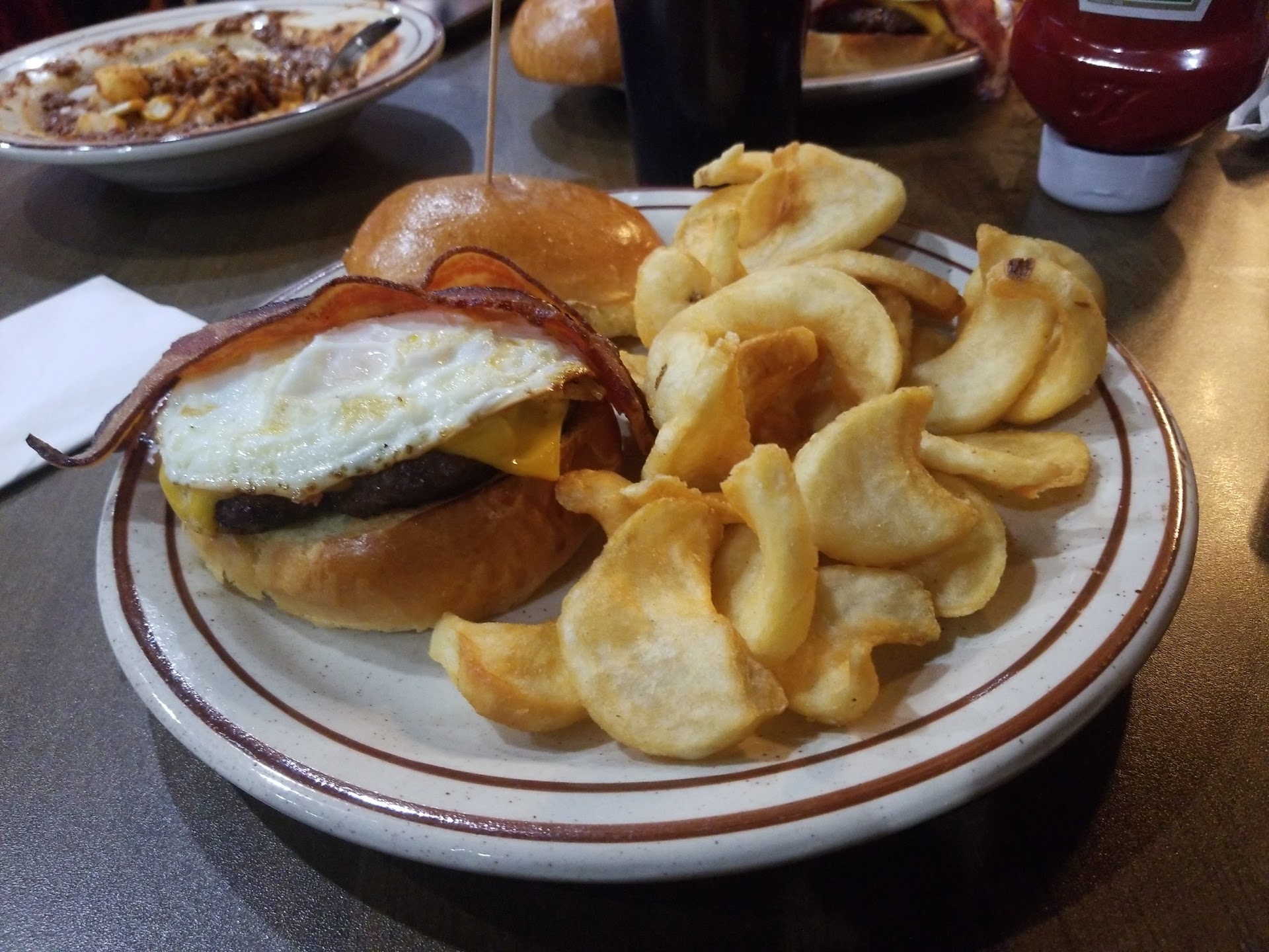 First time and last. Called in a to-go order around 2PM today (8/21/25). Ordered fried pickles, taco salad and a jalapeño popper burger. Arrived about 23 minutes after ordering, greeted 7 minutes later at the bar, asked “what do I need” and responded with “I’m here for a pick up order”. I was told “I’ve got 4 tables in front of you.”. I said no problem and waited 15 minutes before paying and then another 7-8 minutes for the order to bagged/handed off. I was willing to put all that aside as I think they are understaffed as the bartender was busy running around (but saw other employees roaming and who saw me standing at the bar). Took the food home and began to eat. I didn’t realize the burger at the time when I ate the first half (had ketchup with the fries so it was masked I guess?), but when I returned to eat the second half of the burger this evening I noticed the middle was VERY raw (not rare - the difference is clear as day). I called up the location to let them know about the burger (not the other “things” during my visit) and was told “gee, sorry, that’s unfortunate. What kind of cook did you order? Oh medium? Umm. I”m not sure what I can do or my manager. I hope you come to visit us again.” Yeah, that was a bad experience all around and I’d suggest others think about spending their disposable...