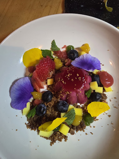 Read moreWe had an incredible meal here. We started rom the appetizer, crostinis. These were lovely to look at and each bite was a different pop of flavor. This was served on a black plate which just sang of fine dining experience. For our entree we selected the Wagyu. It was also a feast for the senses with the lovely plating, the aroma of the food, and the incredible taste. The steak melted in the mouth. The two sides were very yummy, also. The asparagus was cooked perfectly still providing a satisfying crunch while being well cooked. The potatoes were somehow both sweet and savory. To finish out our meal we ordered the hibiscus flan. This was another feast for the eyes as much as a flavor treat. So delicately pretty and also yummy! It did not disappoint! The surroundings were high end, but for all of this I felt the price was quite reasonable. We will be heading...