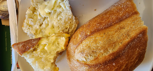 Awful service, long wait times, and out of stock on BREAD! LOL, what?!? At the request of my wife, I stopped in to pick up a meal for her, then drive straight to the hospital to prepare for our baby girl's arrival, where my wife was waiting. Admittedly, I haven't been to Panera in quite a while. To enter and see the "wall of bread" devoid of delicious concoctions, save two whimpering loaves of forgotten sourdough, was a red flag. I spotted the digital order kiosk and thought to myself, "Self, this will certainly be easier and faster than bothering the cashier." I placed my order with a few taps, then saw the little buzzer-doohickey flash and zizz at me. I picked it up and quietly stepped aside to wait for my plasticky buzzy pal Cecil to faithfully alert me to my order (I name all my buzzers, don't you?). You can probably smell the foreshadowing here, but l’ll go on. I waited…..and waited…..and waited. Tightly clutching my beloved Cecil, I made eye contact and smiled at the cashier, telepathically trying to show him I've been standing there for 84 years - listening to him tell customer after customer they were out of baguettes. All while having horrific thoughts of my wife punching me straight in the mouth as I slo-mo swagger into the delivery room with a smile and a bag of delicious Panera food, only to be told I missed the birth of my daughter. Epic fails, here I come. After patiently waiting for about 20 minutes and seeing my name missing from the digital order lineup, I finally asked the cashier what gives. He asked the line staff behind the pickup counter if they had my order. Being one myself when I was a pup, I appreciate the tiring work of all foodservice employees. All except THIS employee. A diminutive, snarky, female barked out at the cashier, "Yea I been calling the name nobody answered." I honestly did not hear my name called, so I proceeded to show her my buzzy friend Cecil and said, "I was waiting for my buzzer to go off." Cue the sound of a needle being dragged off a record. She looked at me as if I just asked her to wipe my soiled behind. She went on to shame Cecil and I in front of all present. In summary, I failed to follow proper Panera procedure and protocol. "You don't take a buzzer when you order from the kiosk,” she quipped. Eye rolls, groans, and whispers surrounded me. Cecil the buzzer, my only friend left at that point, was promptly confiscated and heartlessly heaved into a pile of overworked, non-union buzzers. I skulked out, head down, 25 minutes later, food finally in hand. No physical injury awaited me in the delivery room, as I arrived in plenty of time for the delivery of our little bundle of joy. Had to wait around for that one, too. Thankfully, the food wasn't all that bad. Their new ham sandwich is tasty, but not worth the price. Two thick slices of rustic sourdough bread, fluffed up with tomatoes, lettuce and a healthy dose of thinly sliced red onions makes for one handsome sammie. But do t judge a book by its cover. I had to lift the hood on this jalopy to confirm there was actually ham on my ham sandwich. One anemic see-thru slice. Cheese was painfully absent which, in my humble opinion, completes a good ham sandwich. C’mon Panera, you’re asking ten bucks for sangwich and you can’t spare a slice of Swiss?? Fuhgettaboutit…. The moral of this ridiculous and long-winded story? Know the proper Panera procedure protocols, and you shouldn't have the same experience I had. Paying high prices for medium food and tolerating indifferent, grumpy, Panera employees? This reviewer can only suggest you find another place to eat, order using a human, and don't...