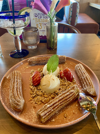 Read moreAfter watching the transformation unfold to the outside of Tia Carmen, I was dying to give it a whirl. WOW! What a gem for Geneva! Walking up to Tia Carmen you can't help but feel happy. The painted bricks with the pink window trim just put you in a perfect mood. I was greeted by the owner who opened the door for me and seated me at a table straightaway for lunch. The dining room was nearly full for lunchtime, which was great to see. My server and all staff that I encountered were attentive and kind. I went to Tia Carmen hungry and knew what I wanted. I went with the combo platter and got a chicken burrito and chicken enchilada. First bite, you are hit with incredibly juicy and flavorful chicken. The rojo sauce on the enchilada tasted like I was sitting in a friends kitchen sampling her cooking. I typically don't dive too deep into the rice and beans but today...gone! Both were cooked perfectly. I had zippo self-control and ordered the churros for dessert. Only one came home. Oh, and I cocktail lunched with the Guava Jalapeno Margarita. Yeah, totally could have sat there for the next 5 hours sipping on those bad boys. The interior is gorgeous and modern and just makes you want to happy dance. But it's the food that makes Tia Carmen sing. Fresh, delicious and made with love. I cannot...