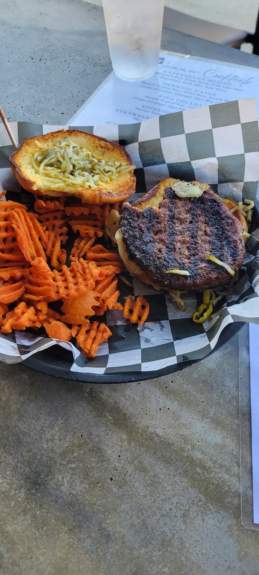 Read moreMuch of GOTL was already closed for the season. East End was one of the few eateries still open. East End is built for high season big crowds, heavy drinking and loud music. So we and a few others felt very alone. Immediately seated and a very friendly server came by. She made our drink orders appear immediately. She offered some food suggestions and our orders appeared darn quick. I had a burger , my partner a salad. Both were very good. Much better than expected. Prices were tourist resort high. But we were happy with the food and my partner's Mermaid Water cocktail. No doubt this review would be very different in high season. But...