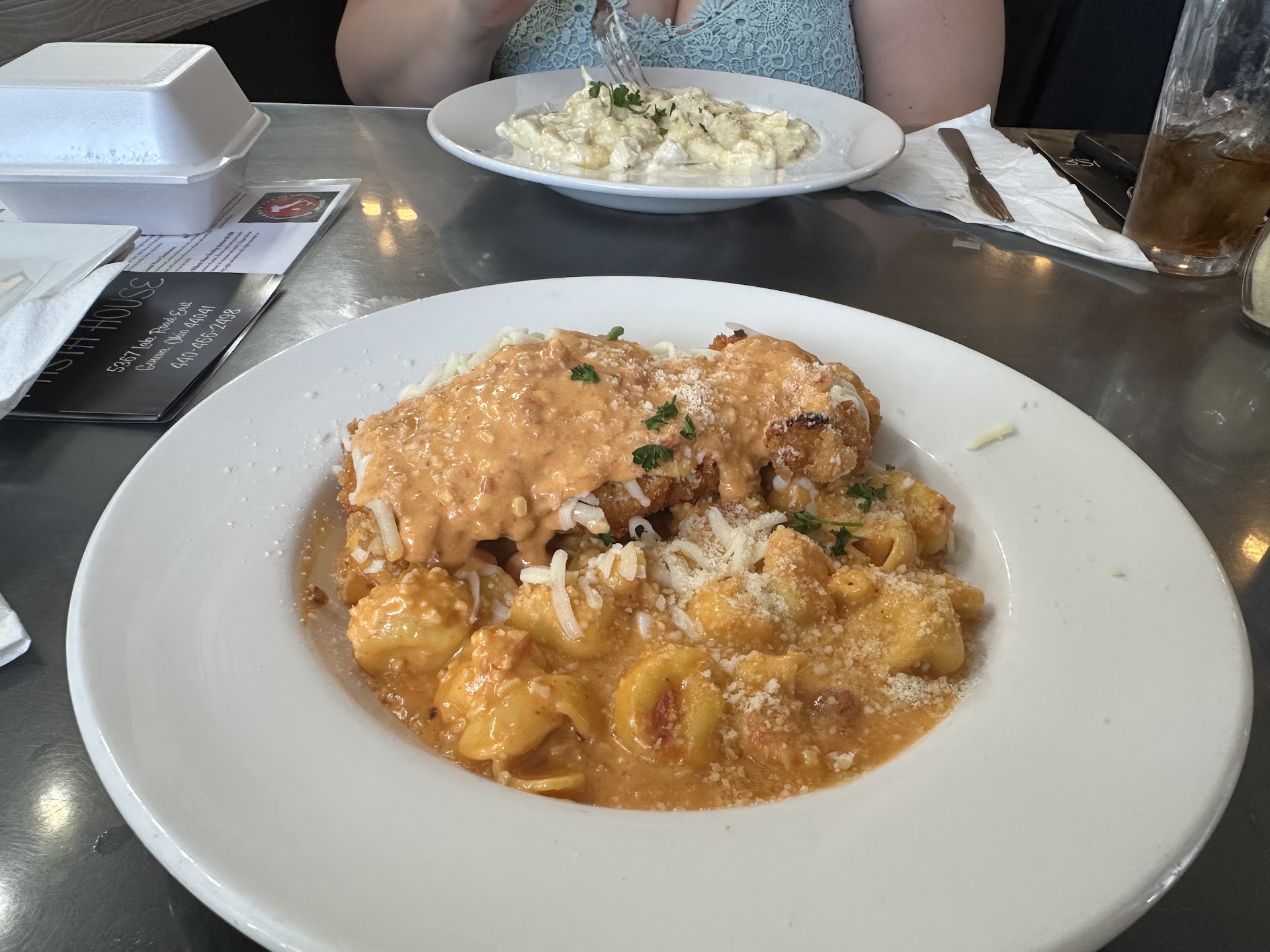 The not so positive ...we both ordered two glasses of water and got charged for bottled water (I can't remember the last restaurant I've been at that wouldn't serve just water in a glass, and usually you're given a heads up first if it must be bottled, especially at 3.50 a pop); the waitress didn't seem to know any of the wines I asked for (an Italian restaurant's staff doesn't know what the Montepulciano is? The wine list isn't that extensive, or obscure) ...I had to point each one out on the menu for her to understand, only for her to tell me every time that they were out, so we gave up guessing what was still available and went without; and the tiramisu I ordered to go and ate right after we left was the worst I'd ever had in my life, no exaggeration. It was so heavy and tasted sort of stale, with almost none of that classic espresso flavor. I wouldn't eat it again even if it were free. It was that bad.