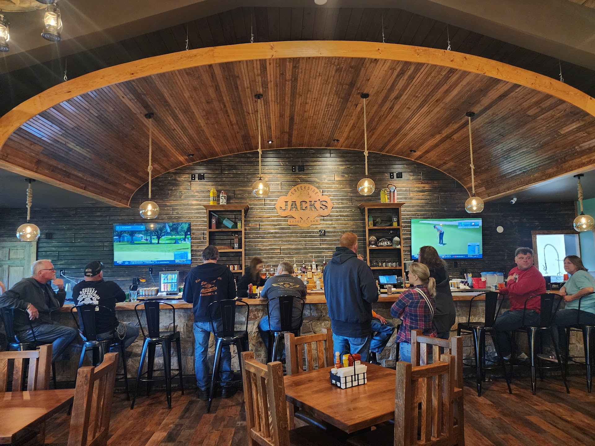 Read moreOut leafpeeping and exploring, we decided to stop for a glass of wine and an appetizer. We were greeted and served by an upbeat, love-filled soul, Ambrazia, who couldn't have been more hospitable and accomodating. Creekside is a gem that needs discovery: the physical plant is spacious and impeccably clean, complete with a huge bar on one end of the restaurant and a smaller one in the game space (adjacent to the golf simulator). The game room was very complete with two bowling lanes, video games and much more. Outdoors is prime for fair weather fun. picnic tables and bar seating are just begging for that next gorgeous day and overlook a beautiful creek. The menu offers traditional Dairyland Favorites (cheese curds; Friday Fish Fry with choices of perch or walleye) and takes on a southern twist with other menu items. Two other restaurants in the group are in Lake Geneva: Fat Cats and Magpies. if you love them, why not head to Creekside Jack's? We...